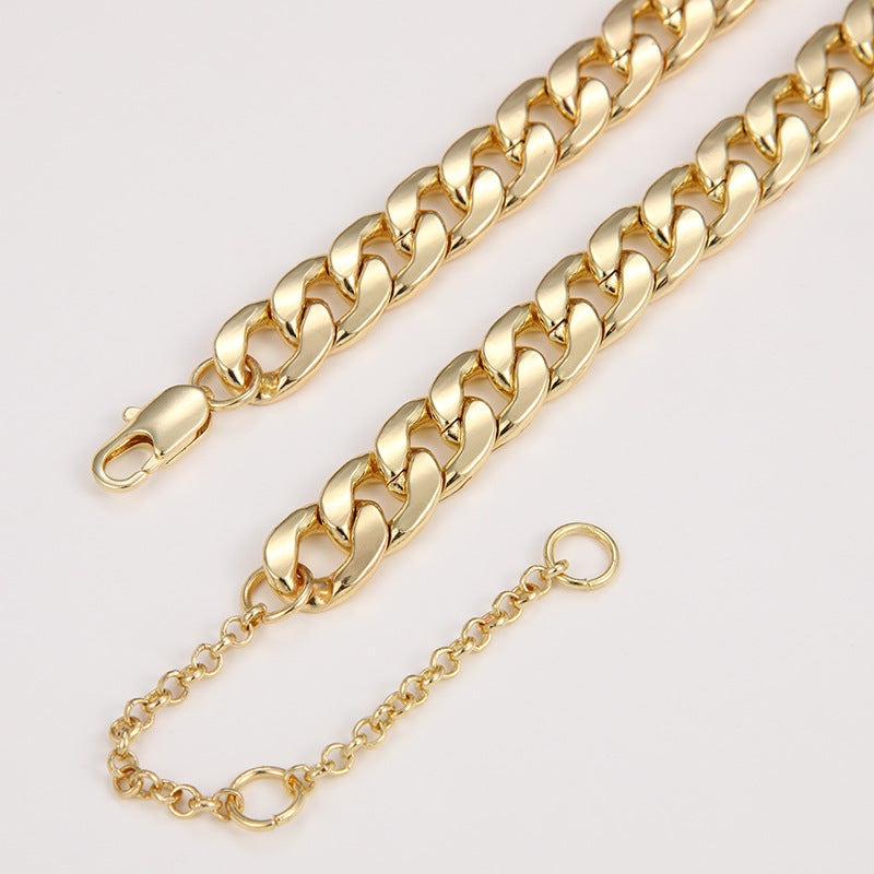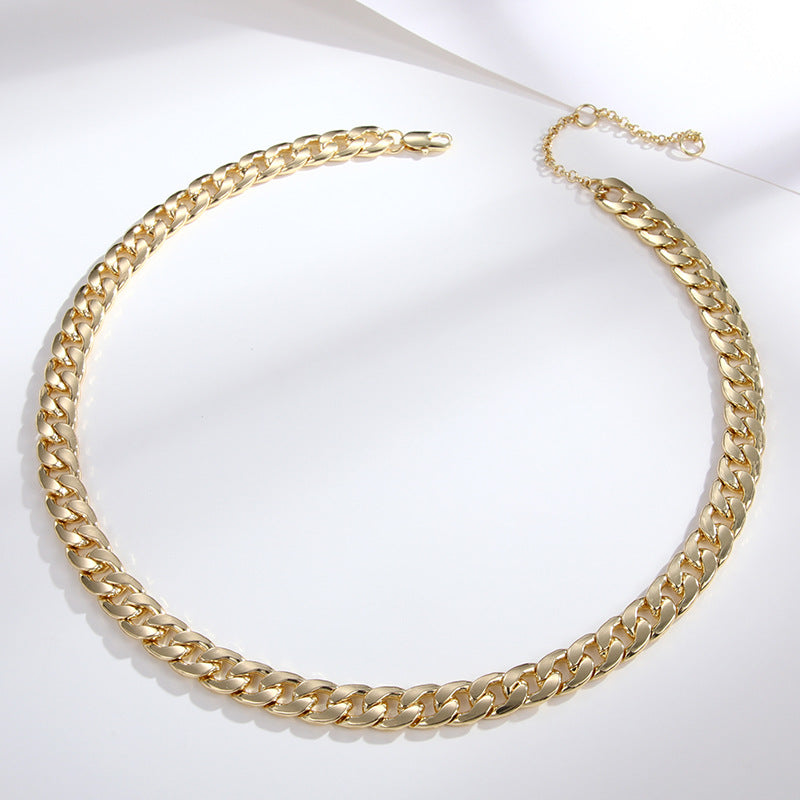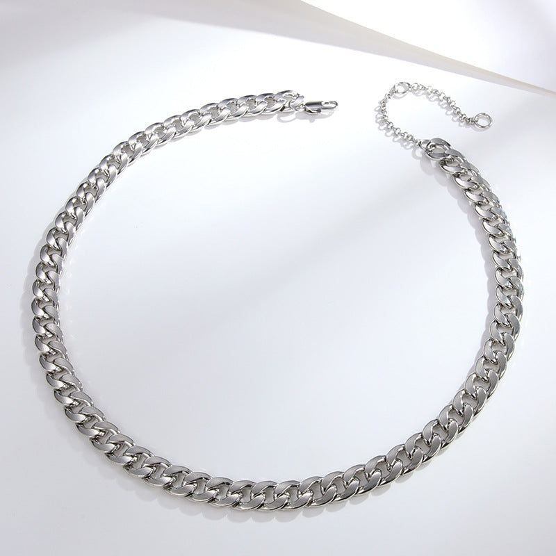 NCN02086金屬電鍍金銀雙色扁項鏈男女歐美嘻哈ins誇張古巴鏈夏季潮流kj202104