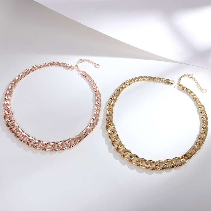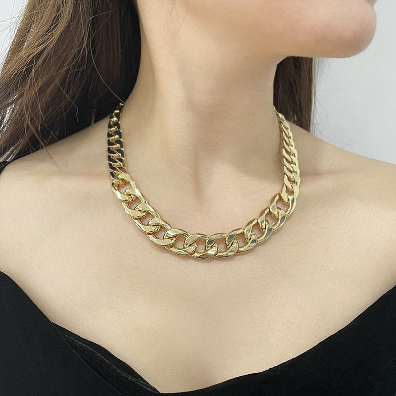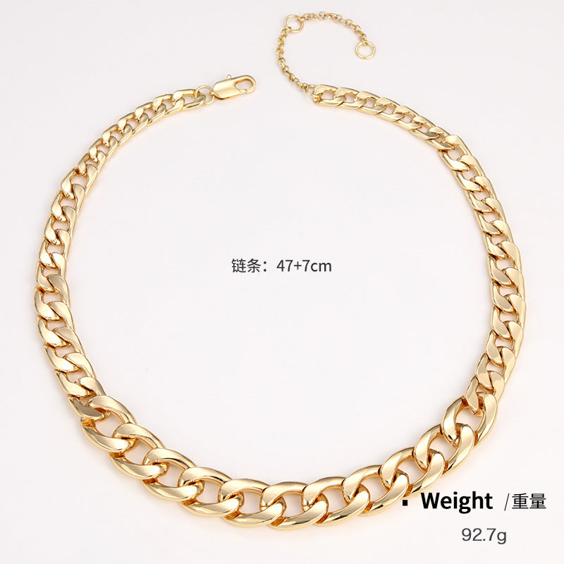 NCN02089金屬粗鏈條古巴項鏈男女朋克嘻哈ins風扁鏈歐美誇張電鍍保色kj202104