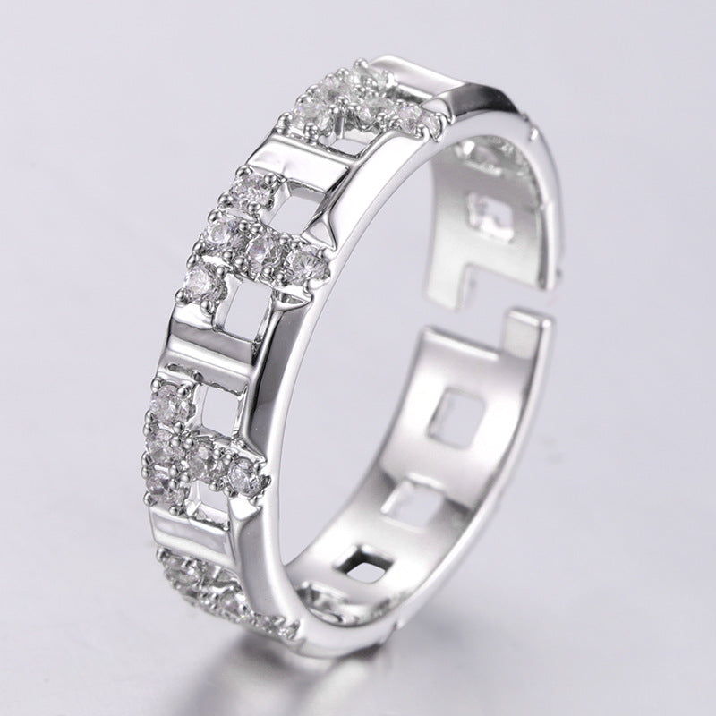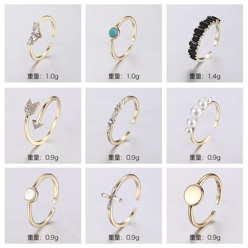 NCR00460飾品 韓版簡約鑲鋯時尚女式戒環時尚個性開口可調節戒指手飾kj202103