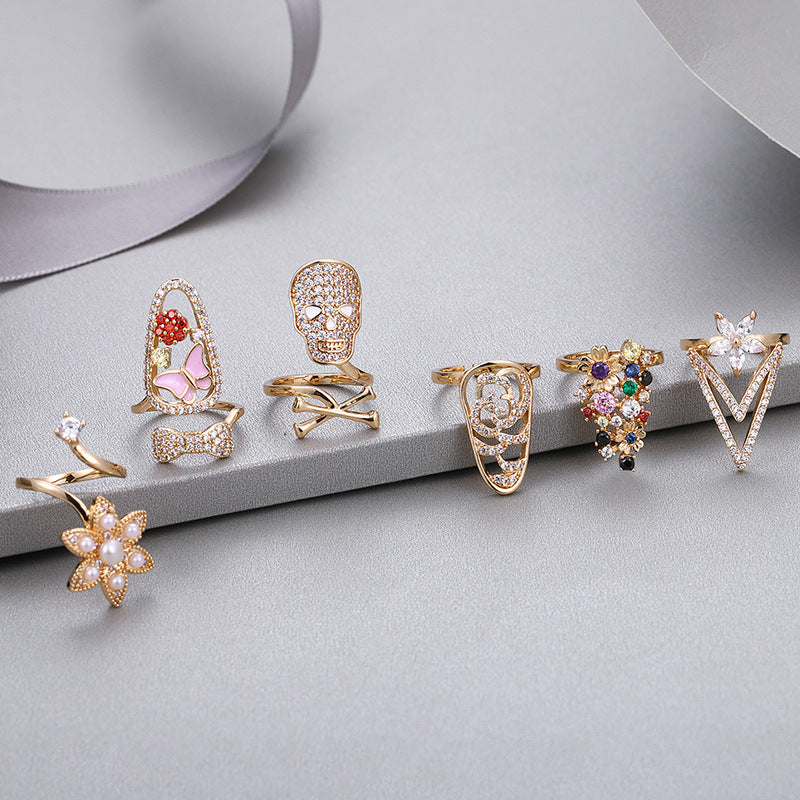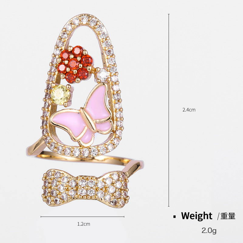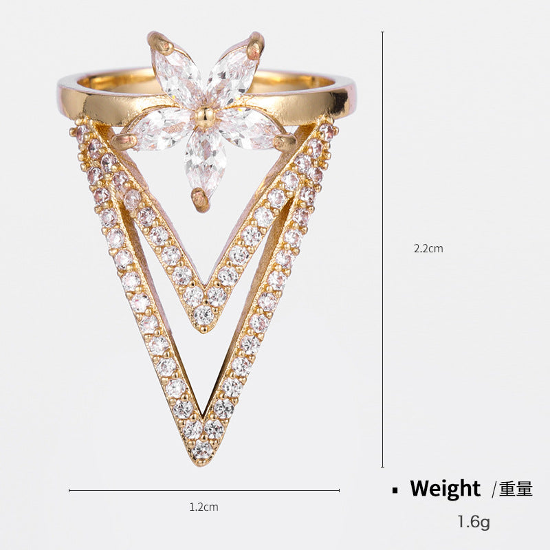 NCR00874銅鍍真金鋯石指甲戒指女 嘻哈美甲潮流指尖戒幾何開口可調節kj202104
