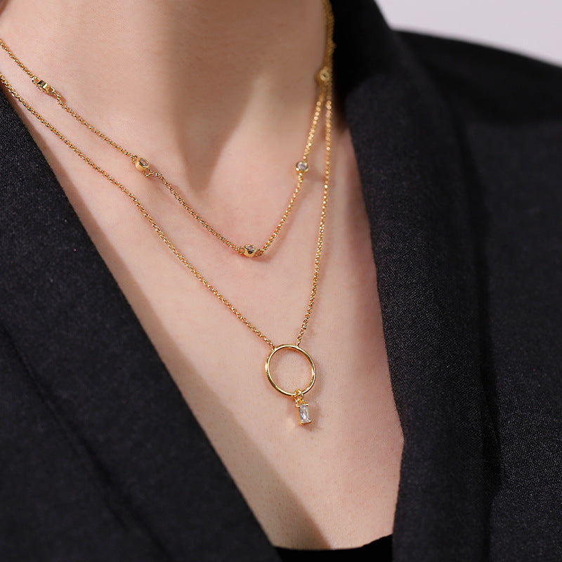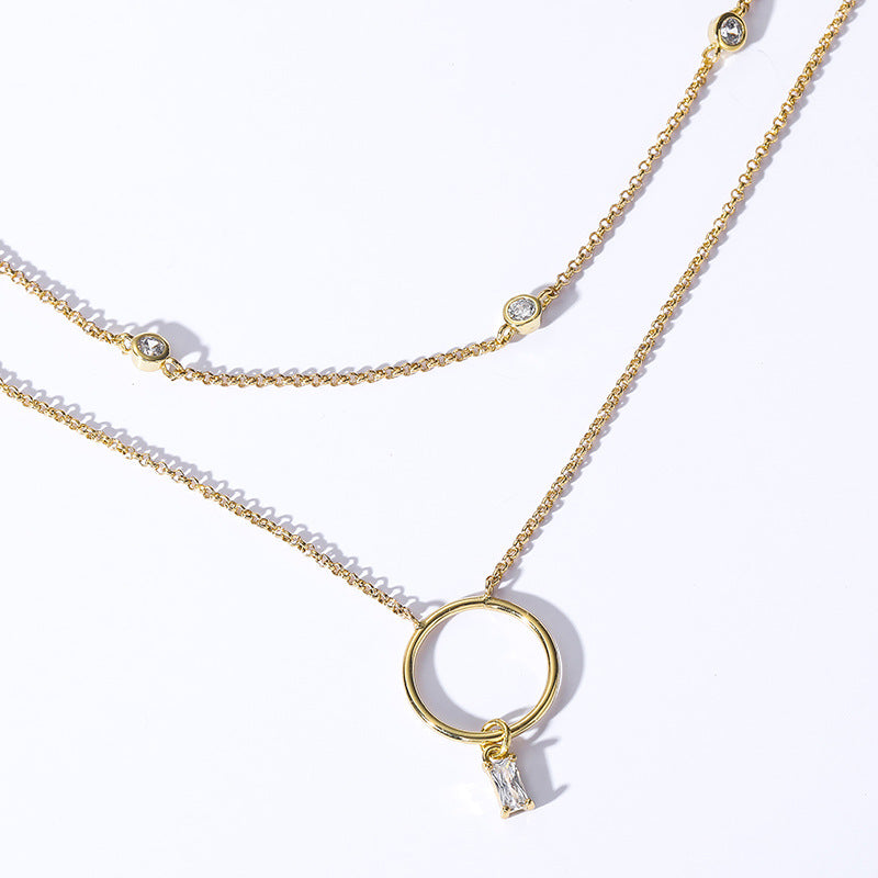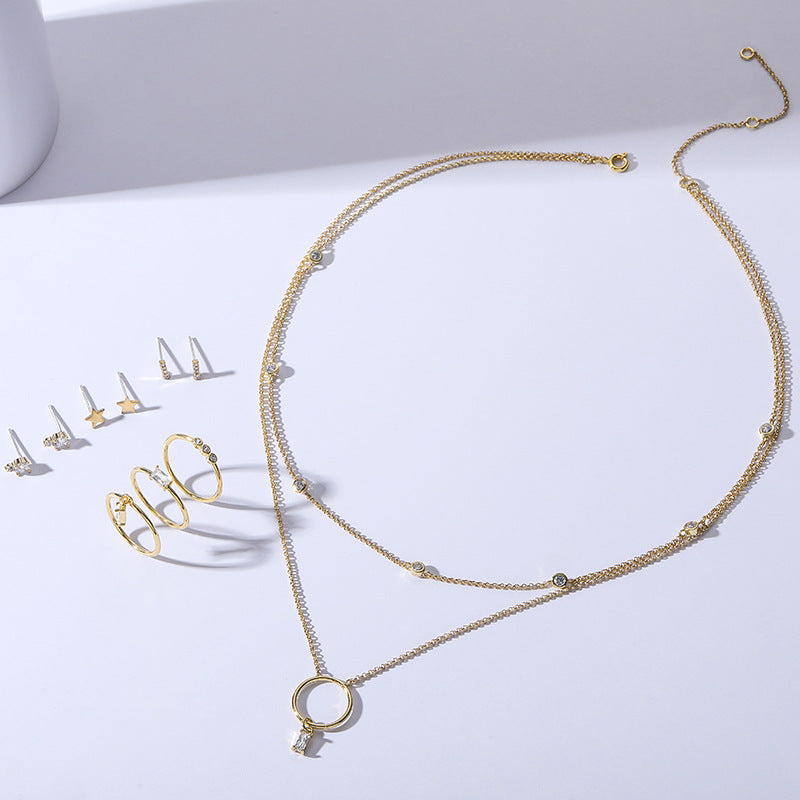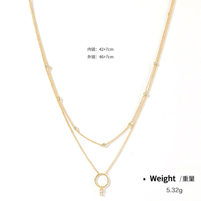NCS00240銅鍍金鑲鋯項鏈套裝 歐美金色女式獨立包裝多排疊戴項鏈項飾kj202106