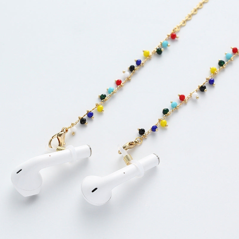 NCT00093飾品歐美跨境熱賣彩色金屬水晶珠多功能眼鏡鏈無線耳機防丟鏈kj202103