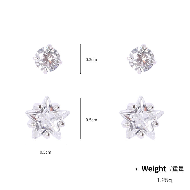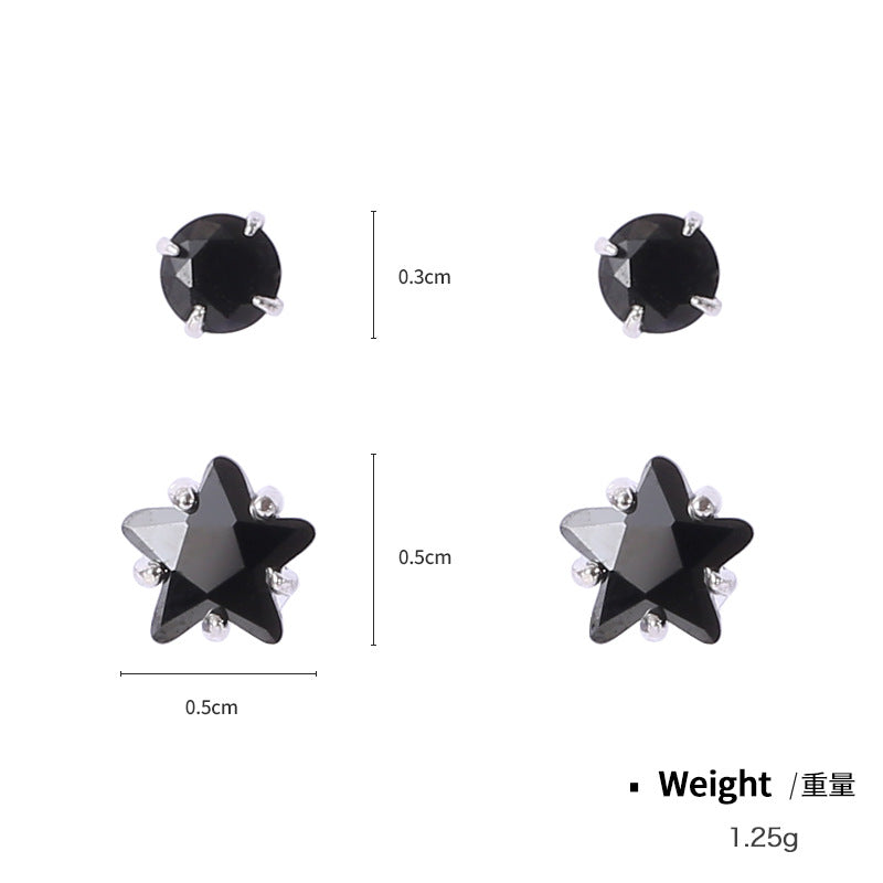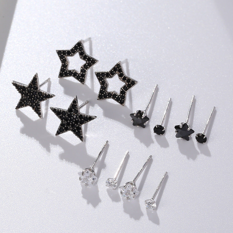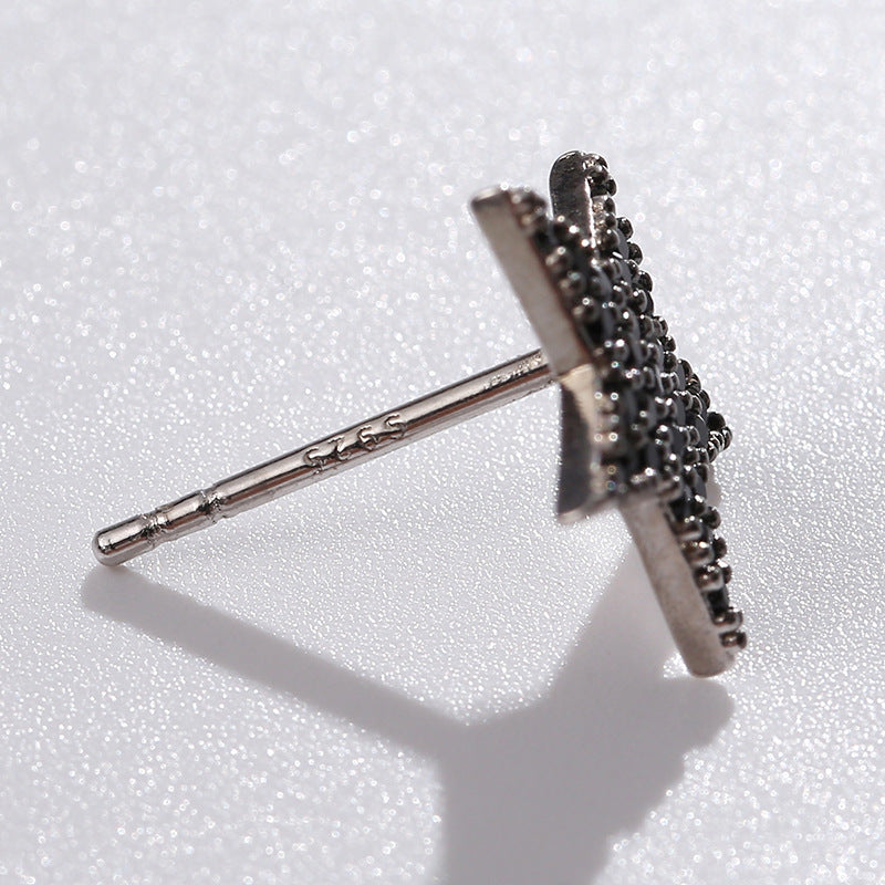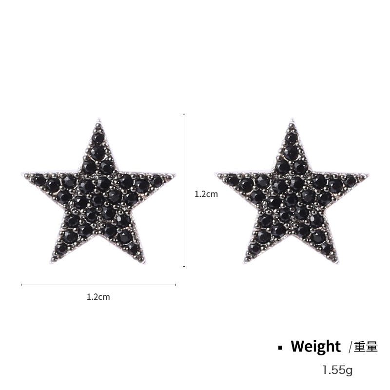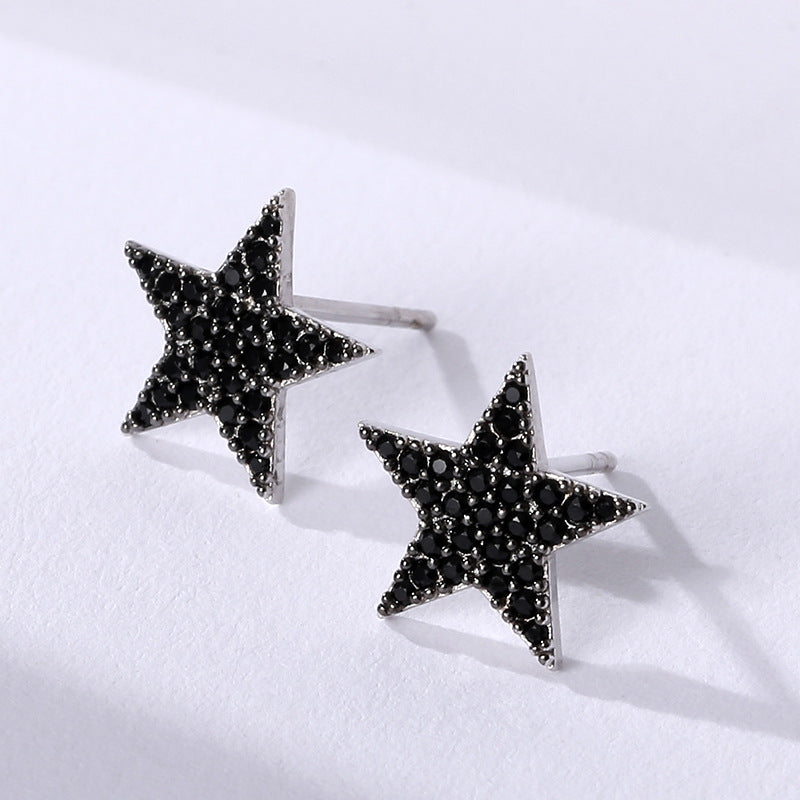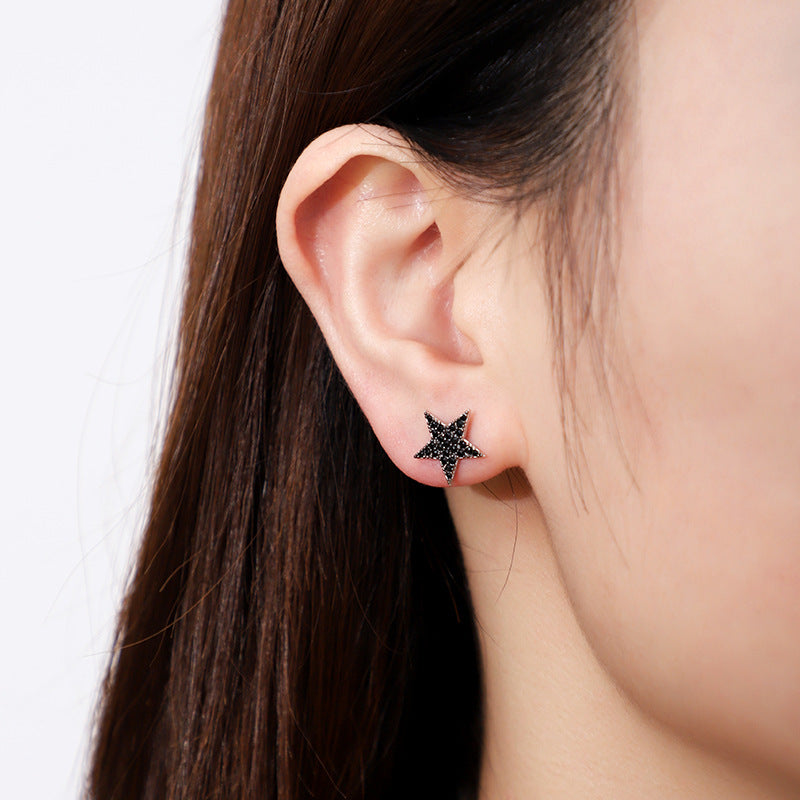 NSE00124日韓s925純銀鑲鋯星星鏤空造型耳環女 簡約氣質百搭黑色耳飾kj202105
