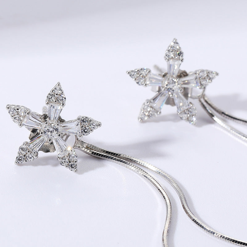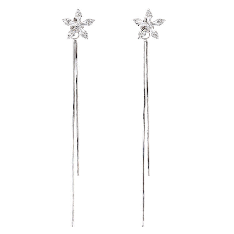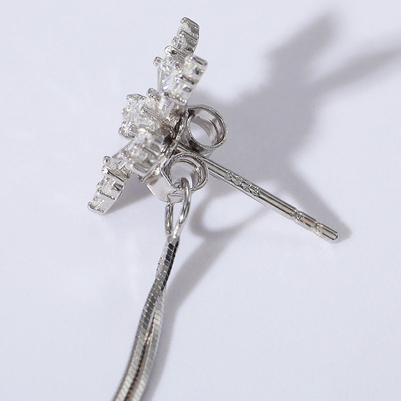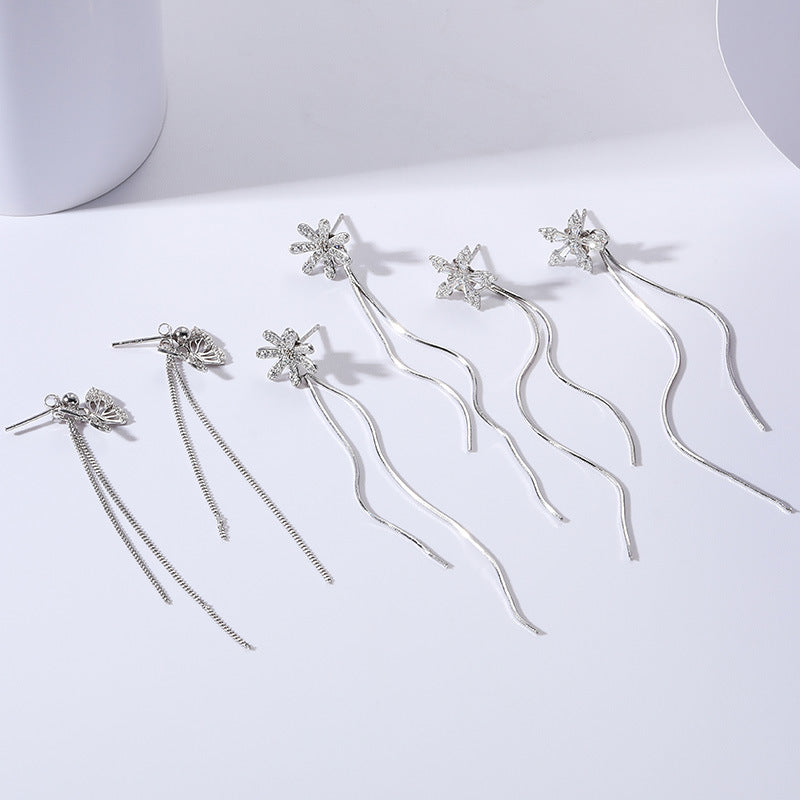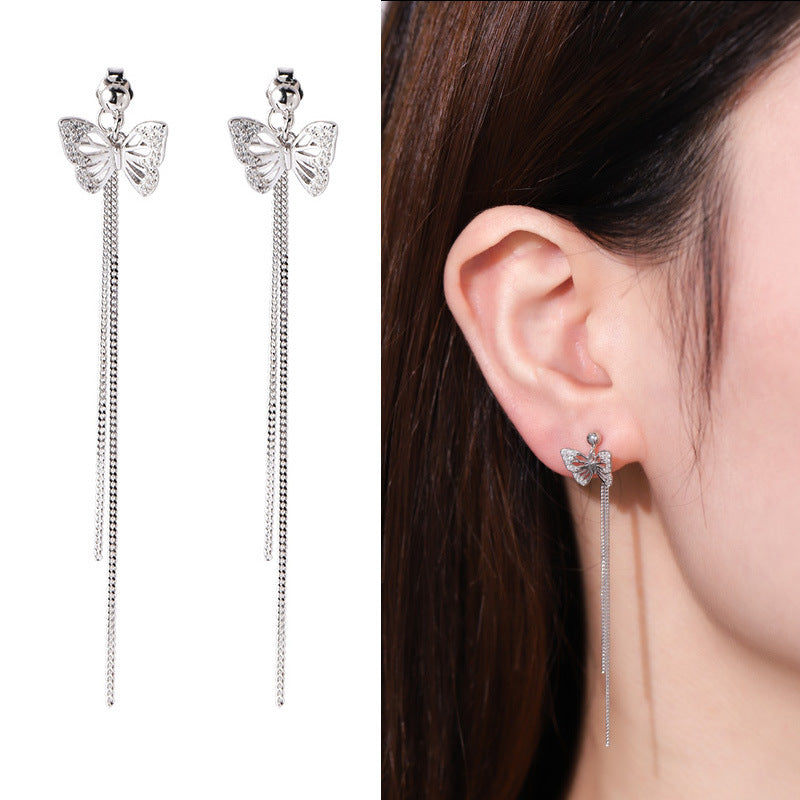 NSE00125純銀鑲鋯長款流蘇EG耳環女式韓版簡約氣質花型蝴蝶雙戴耳線kj202105