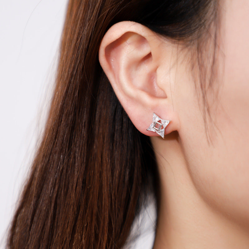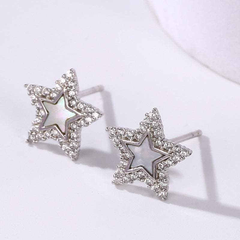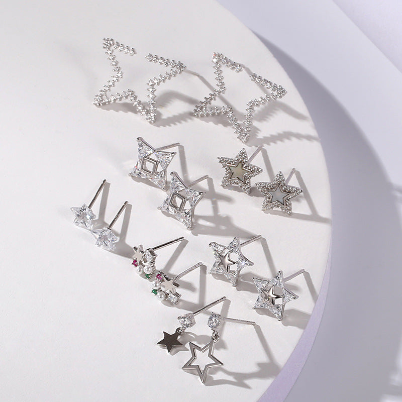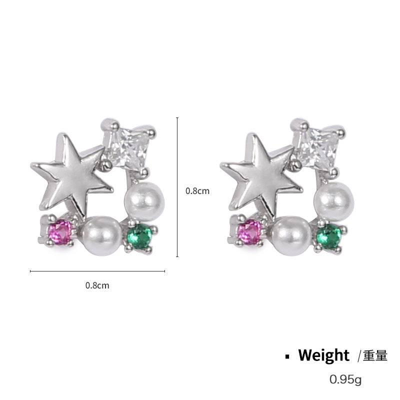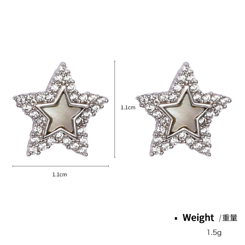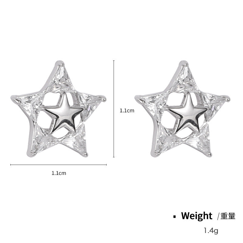 NSE00141韓版簡約s925純銀鑲鋯氣質耳釘女式 幾何不規則星星復古耳飾kj202105