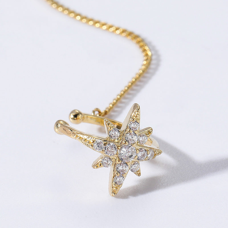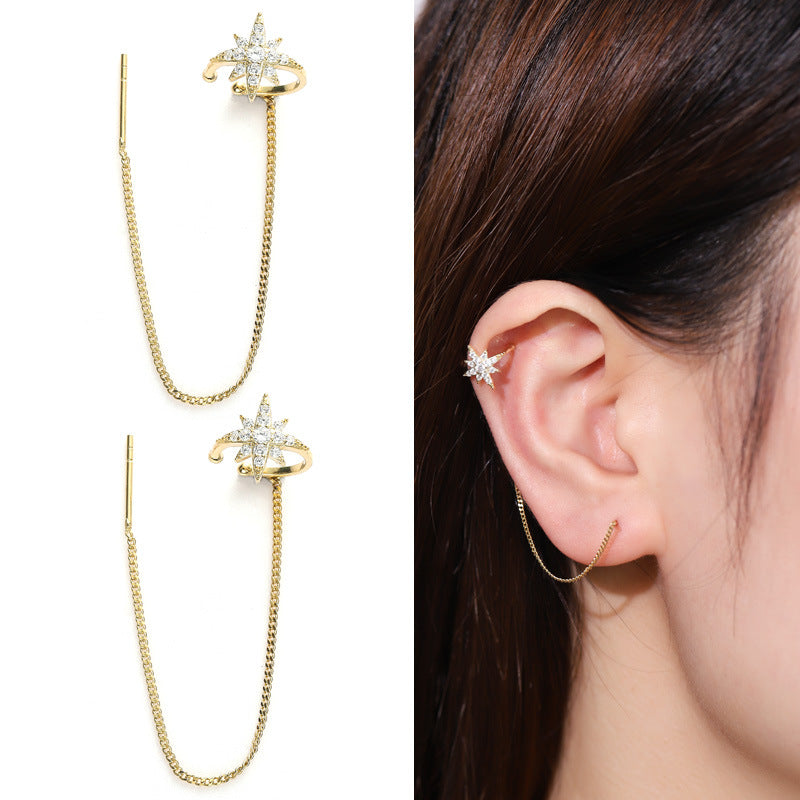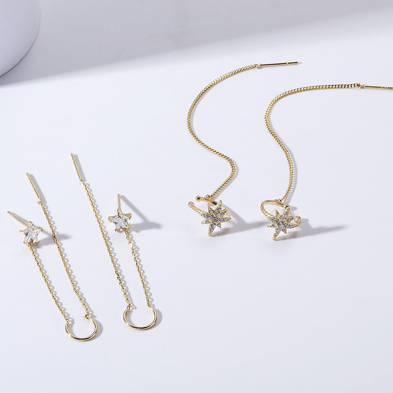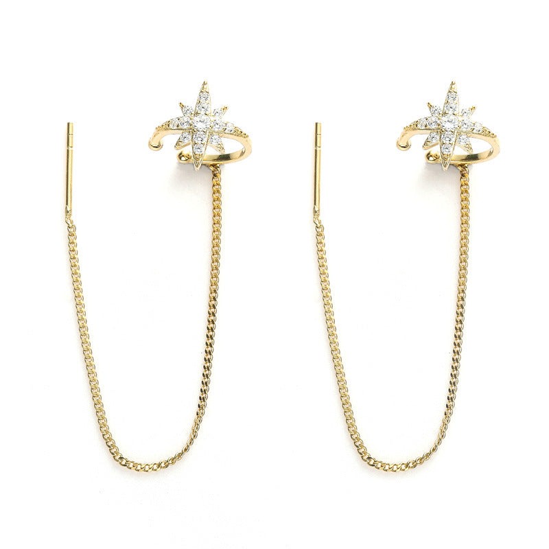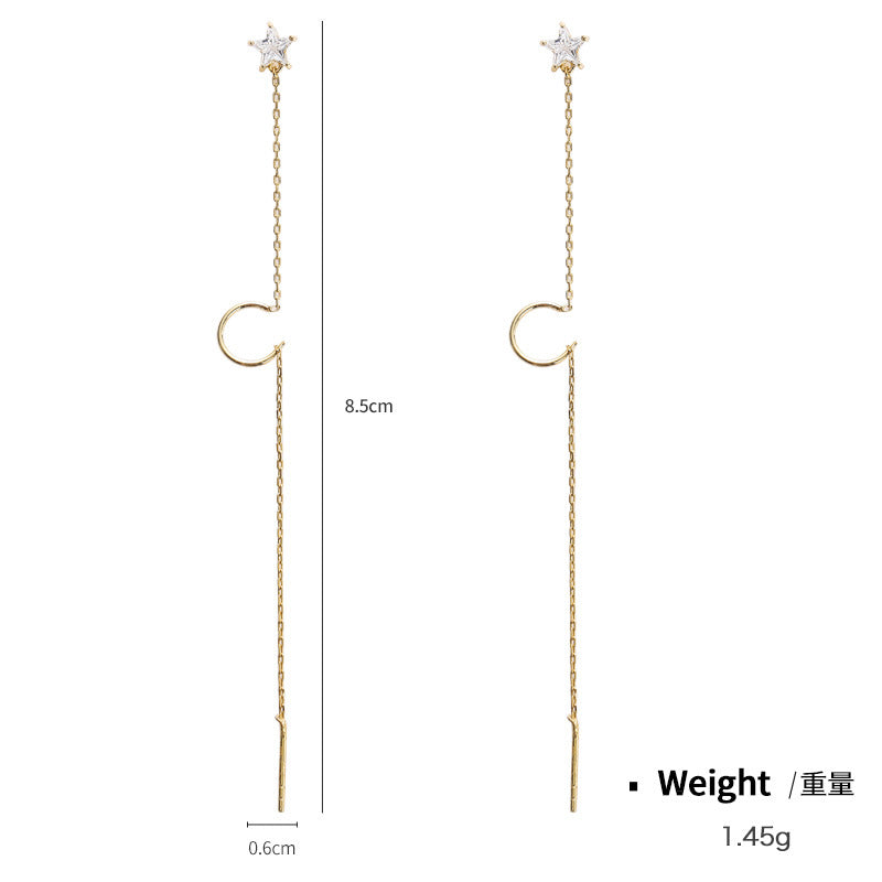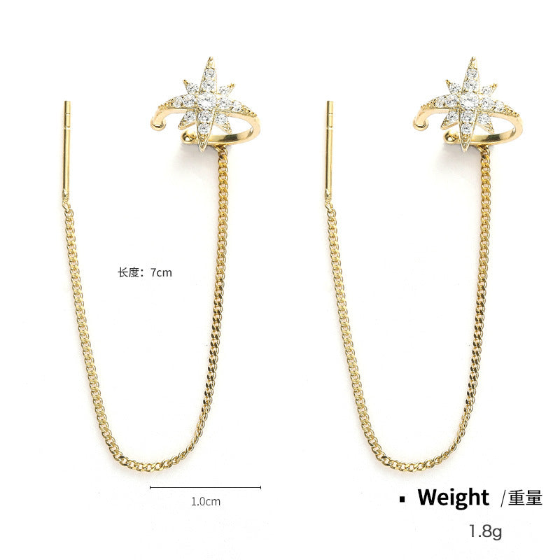 NSE00280925純銀鑲鋯電鍍真金鏈條流蘇耳釘日韓復古個性星型耳環耳飾kj202105