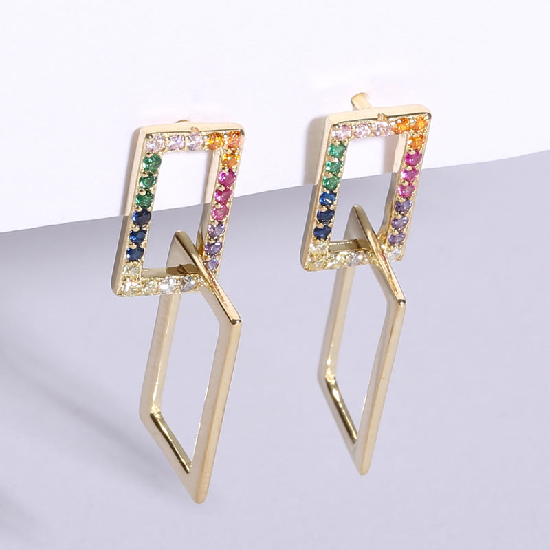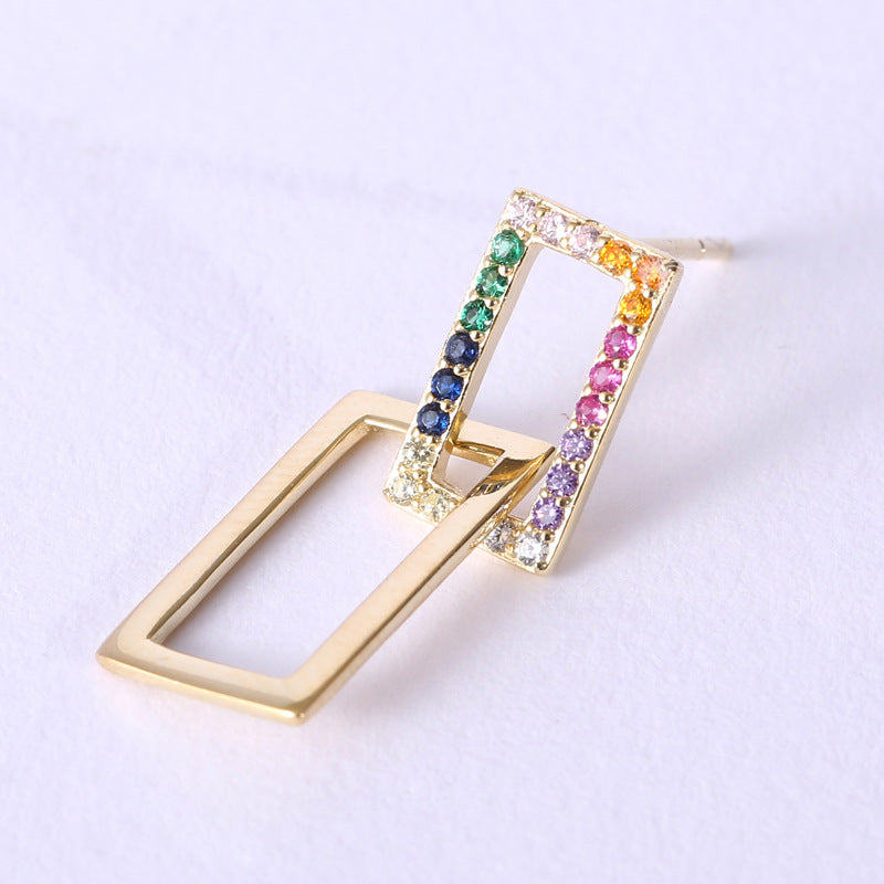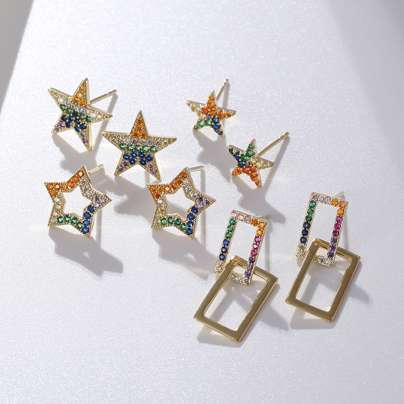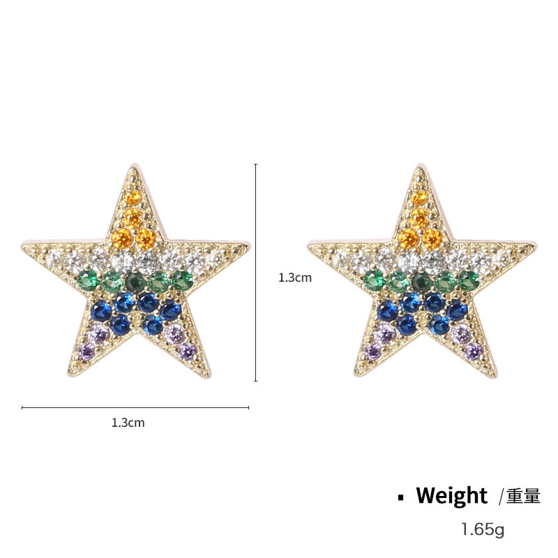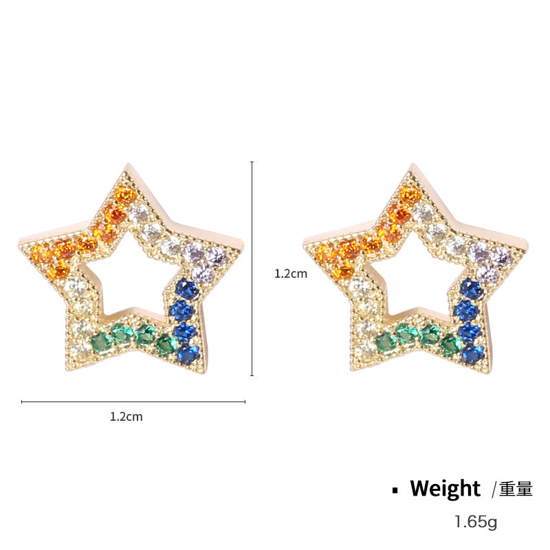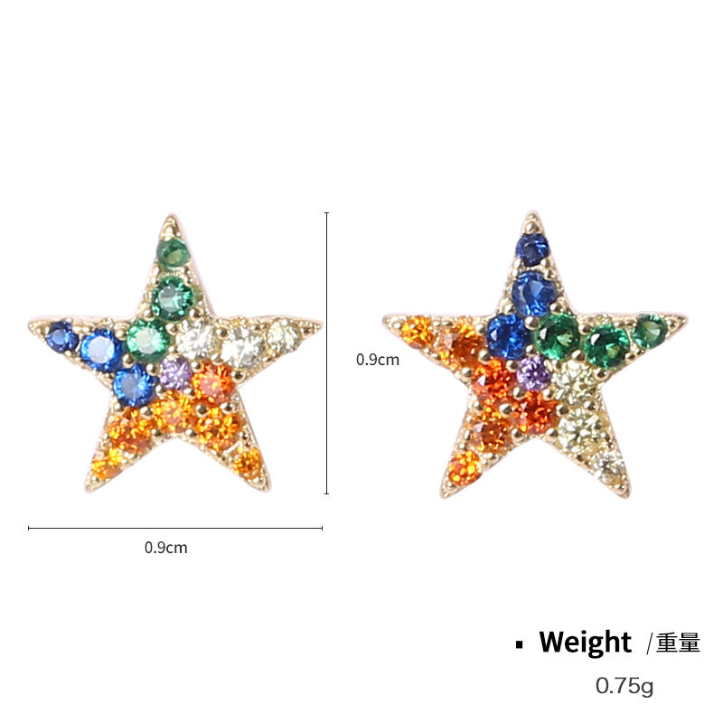 NSE00281日韓風純銀鑲鋯星型耳環女 彩虹色星空系列簡約氣質幾何耳飾kj202105