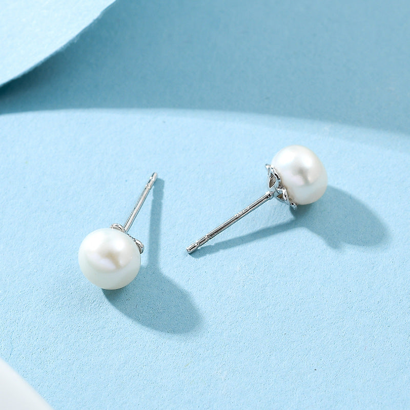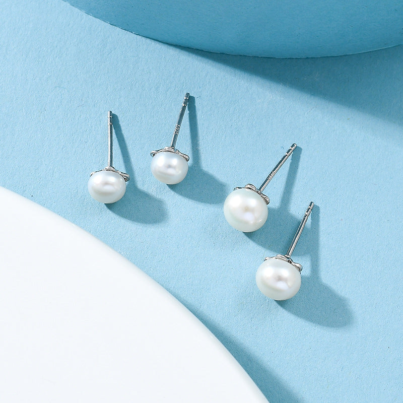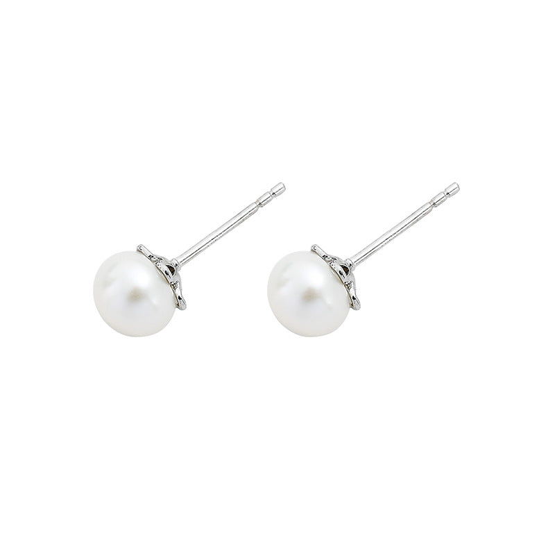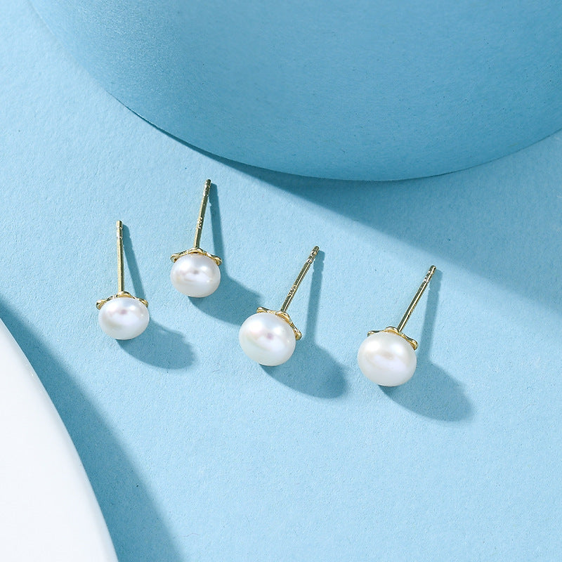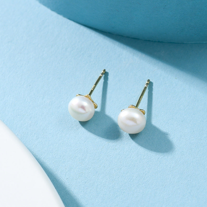 NSE00736s925純銀金色鑲淡水珍珠氣質耳釘經典日韓時尚百搭耳飾女學生冷淡kjpearl