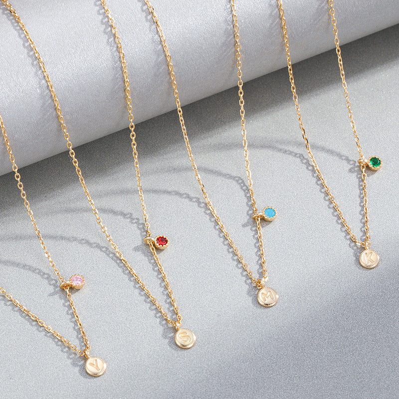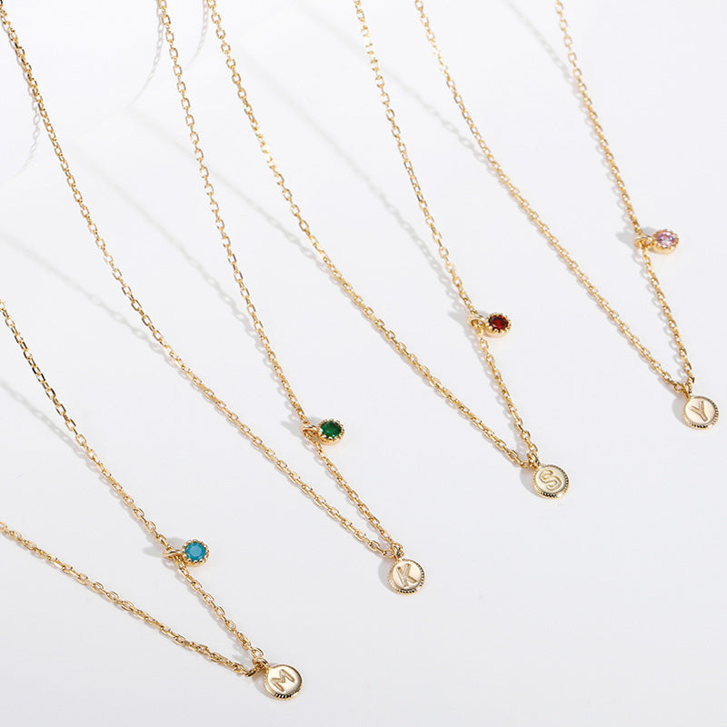 NSN00841_1通體純銀鑲寶石電鍍真金鎖骨鏈女 日韓簡約氣質個性字母項鏈kj202105