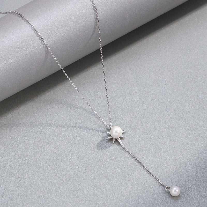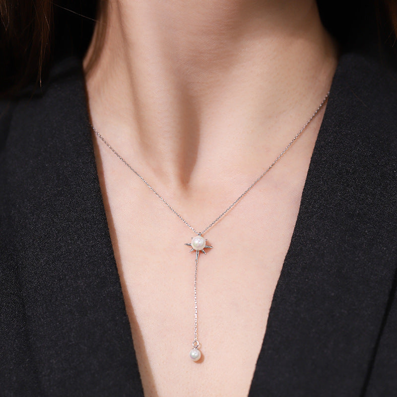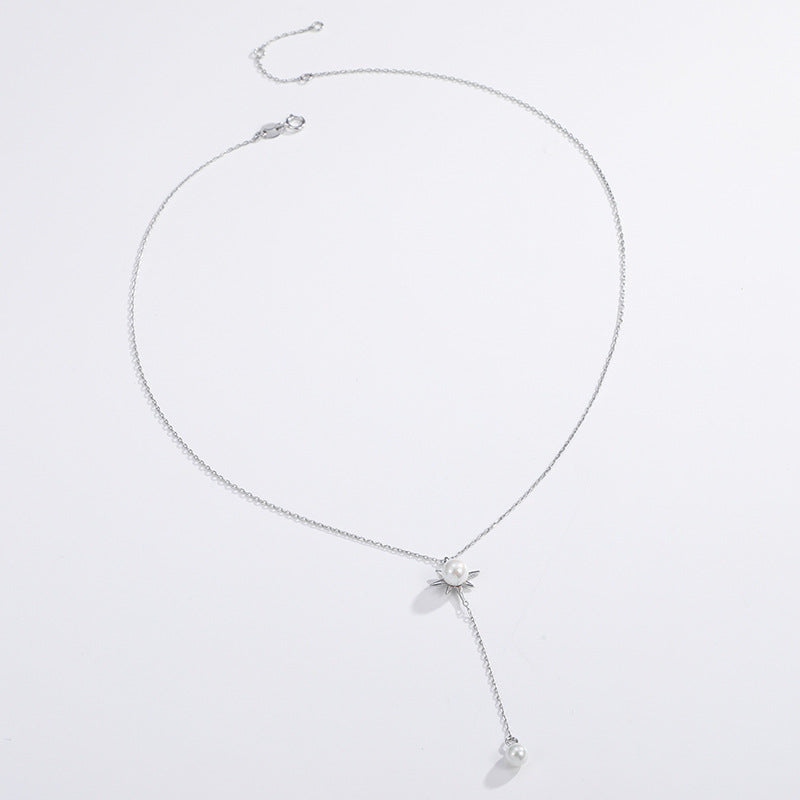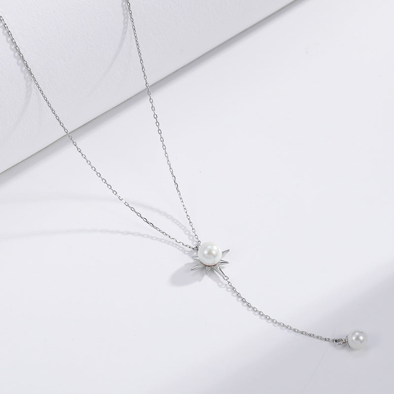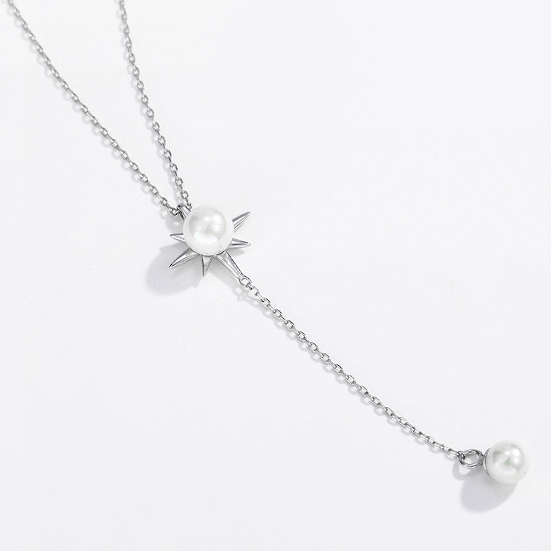 NSN01115通體純銀鑲珍珠八芒星帶流蘇吊墜 韓版簡約氣質Y字型鎖骨鏈kj202105