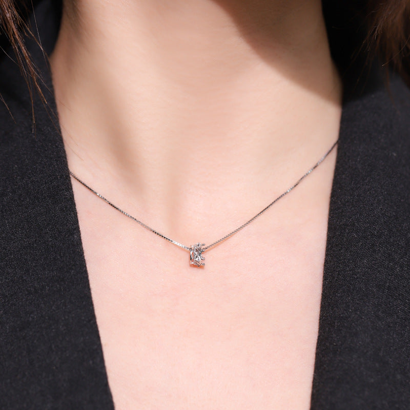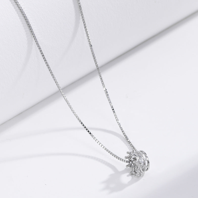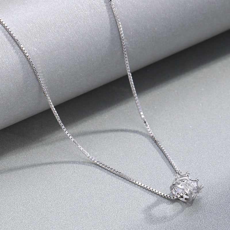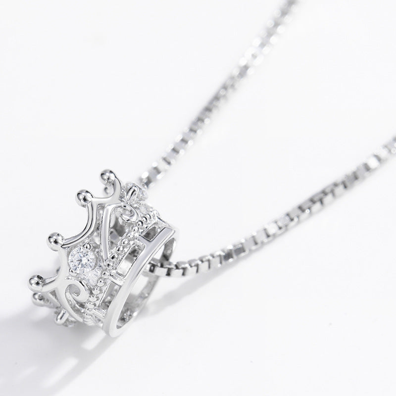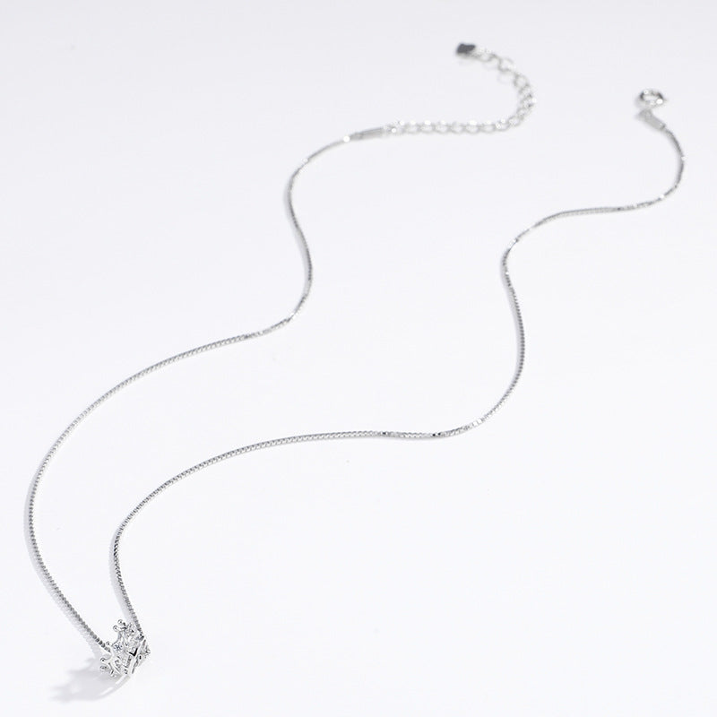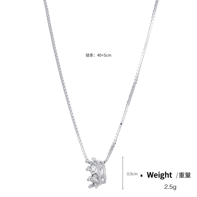 NSN01153通體純銀鑲鋯精致鎖骨鏈女式夏季百搭簡約氣質皇冠吊墜項鏈kj202105