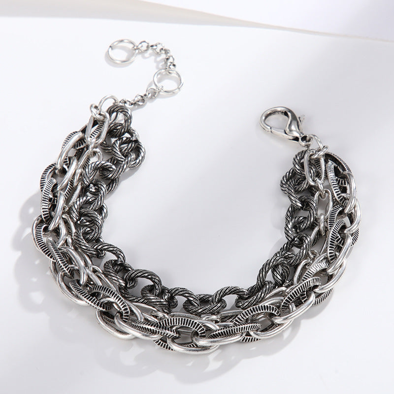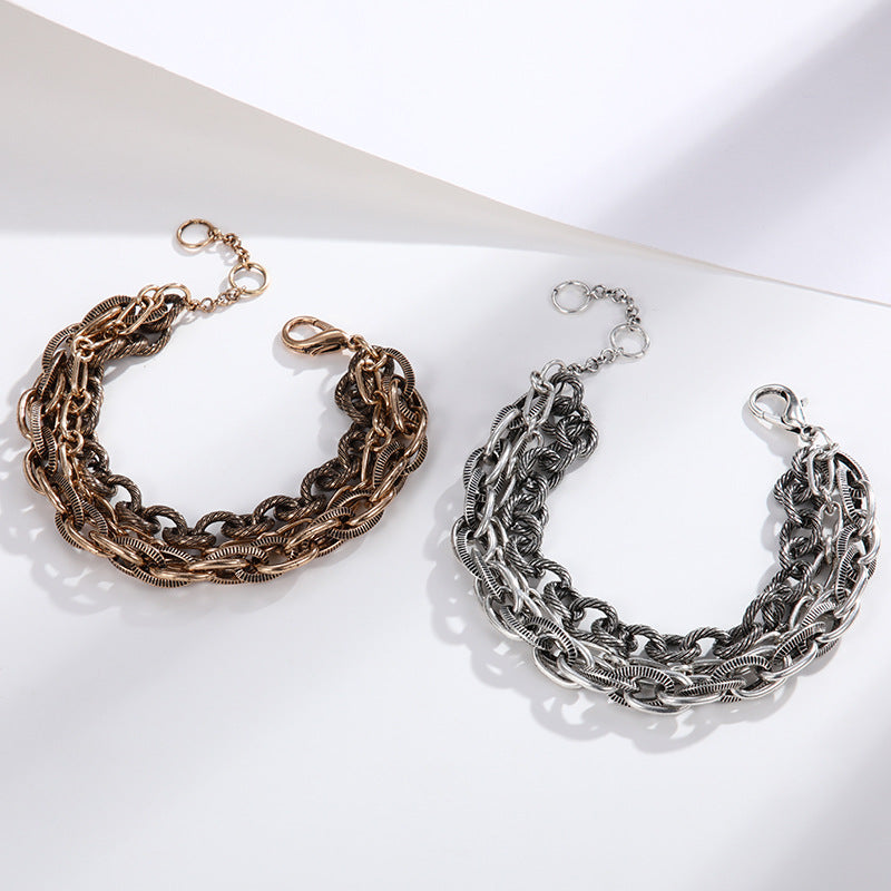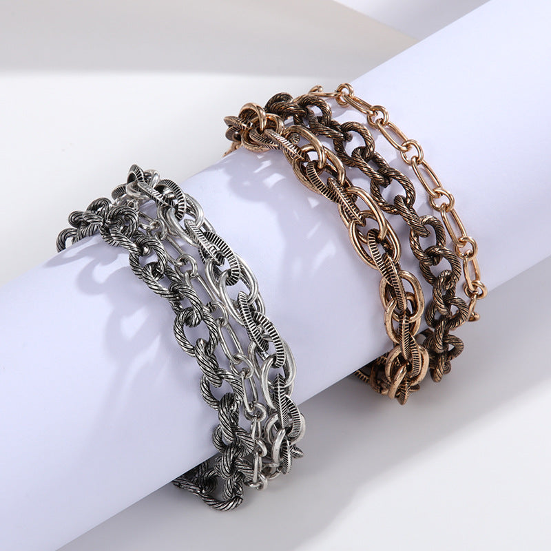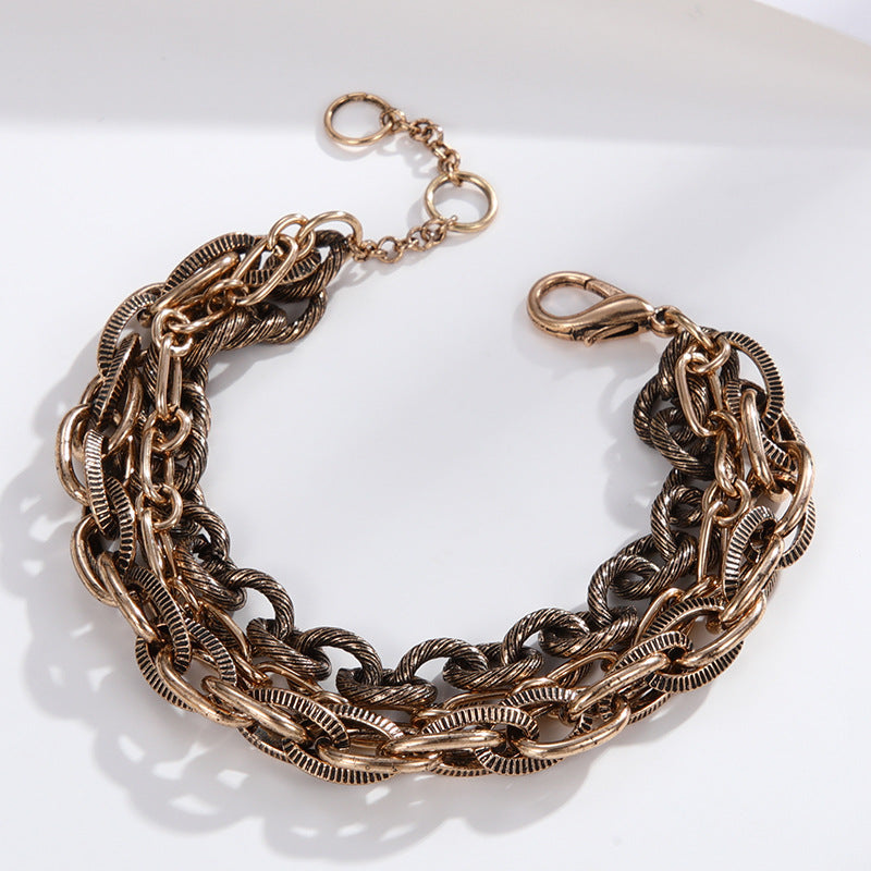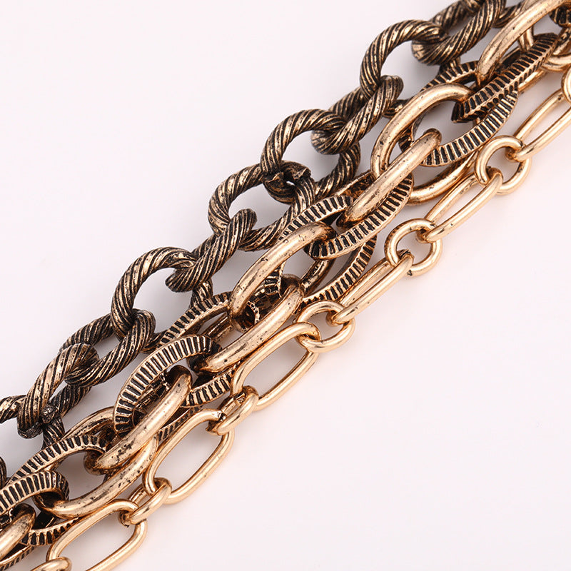 NTB01018跨境金屬電鍍古金復古手鏈歐美ins風粗鏈條古巴手鏈潮流古銀kj202104