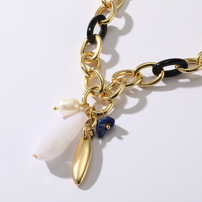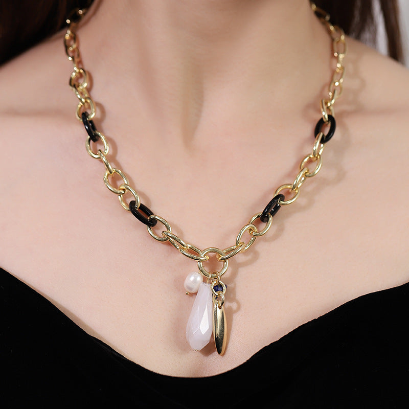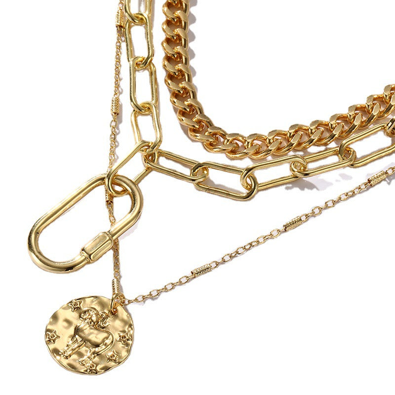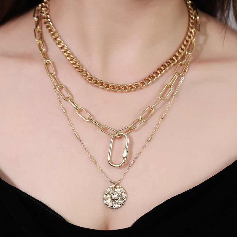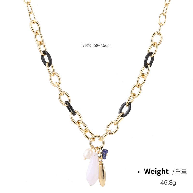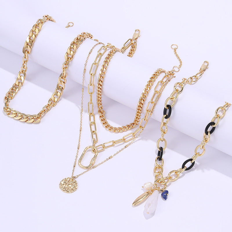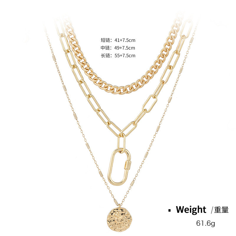 NTN02125金屬鍍金多層疊戴幾何型項鏈女歐美跨境ins樹脂珍珠錢幣項飾kj202106