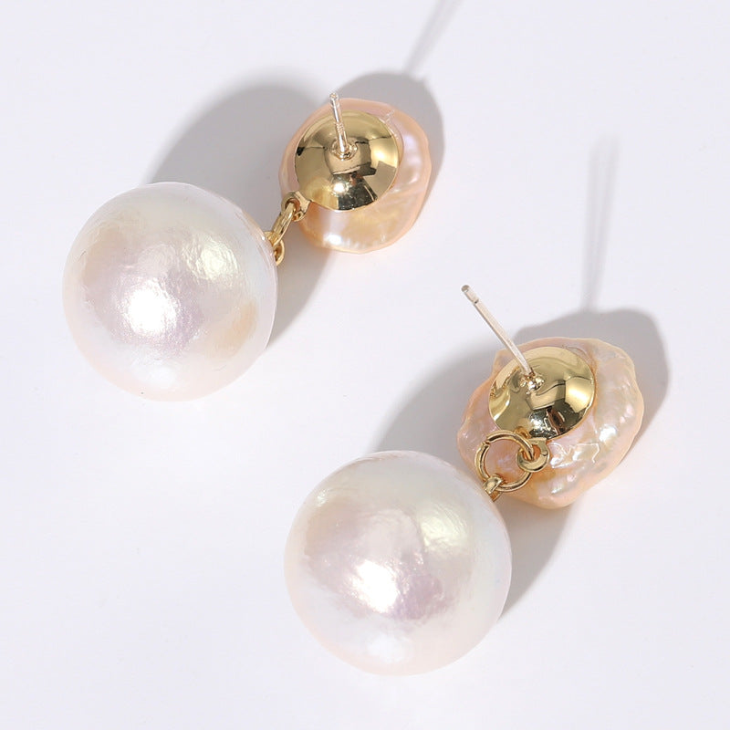 NXE00211飾品 天然淡水珍珠925銀針金色耳飾女式日常百搭歐美ins耳環kjpearl