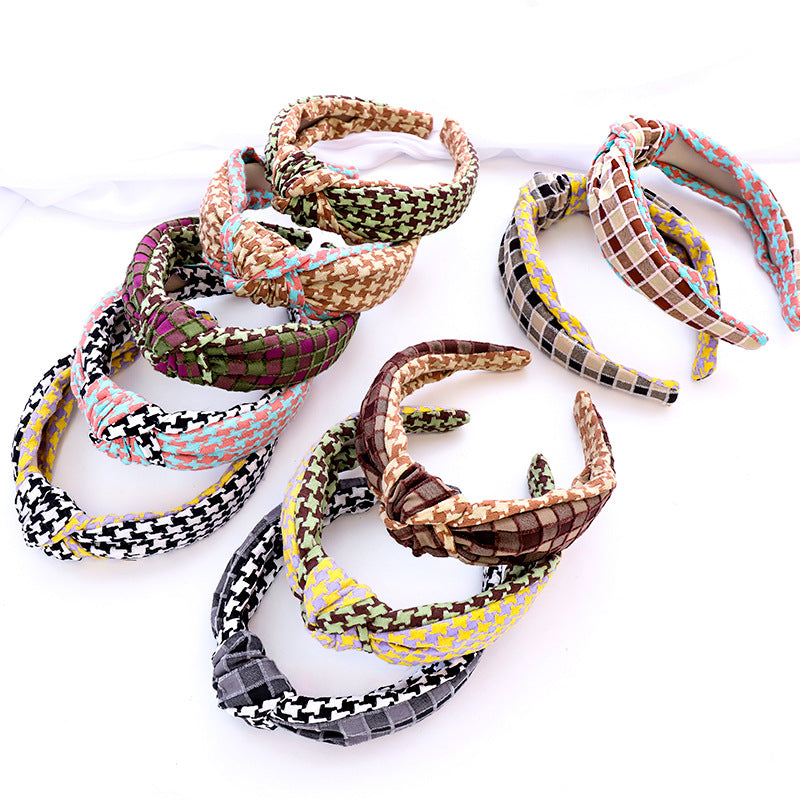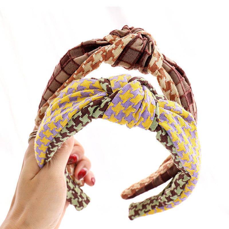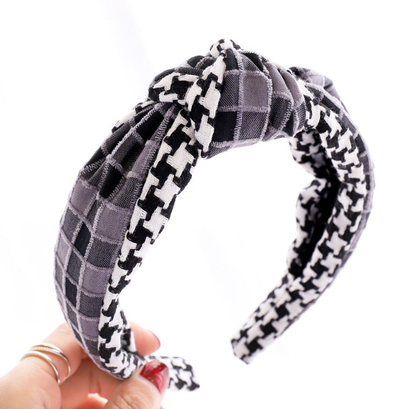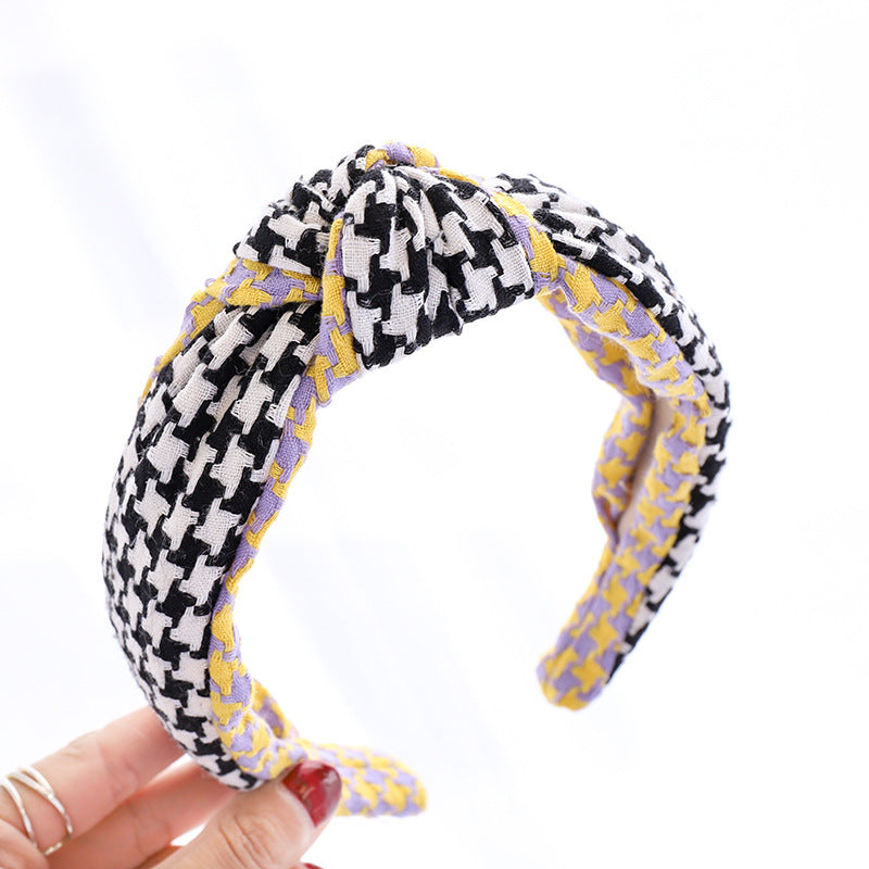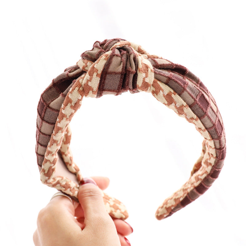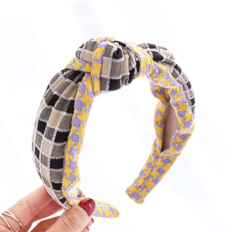 R106韓版小香風拼色髮箍時尚秋冬格子布藝中間結頭箍髮卡女士頭飾Plaid