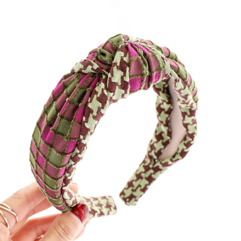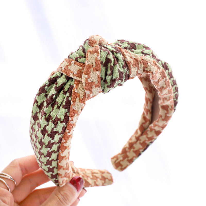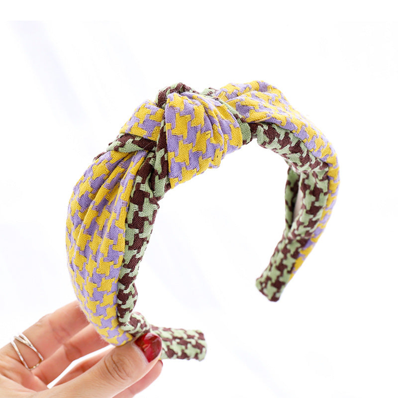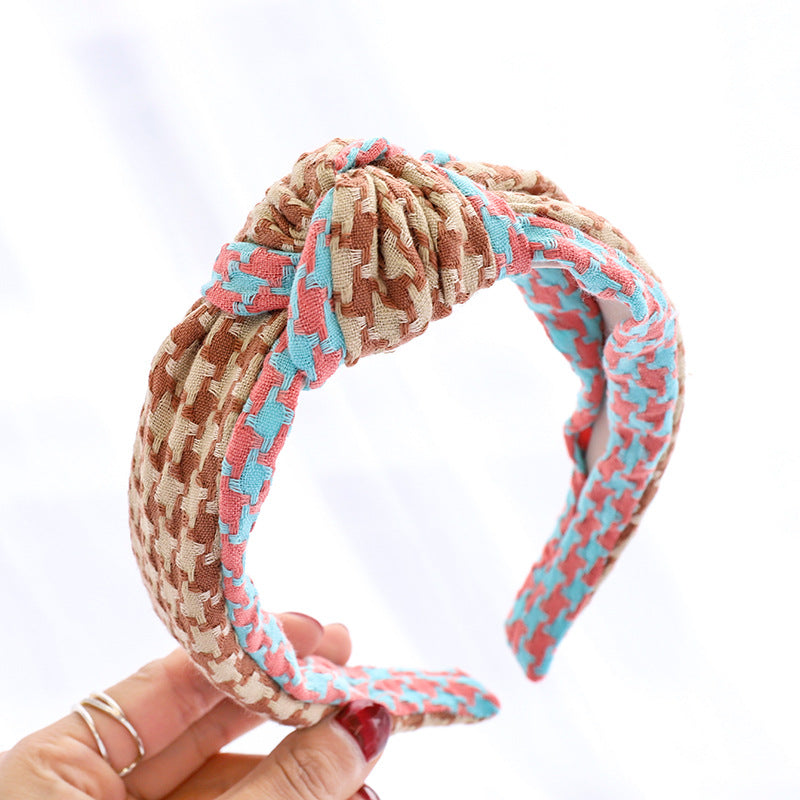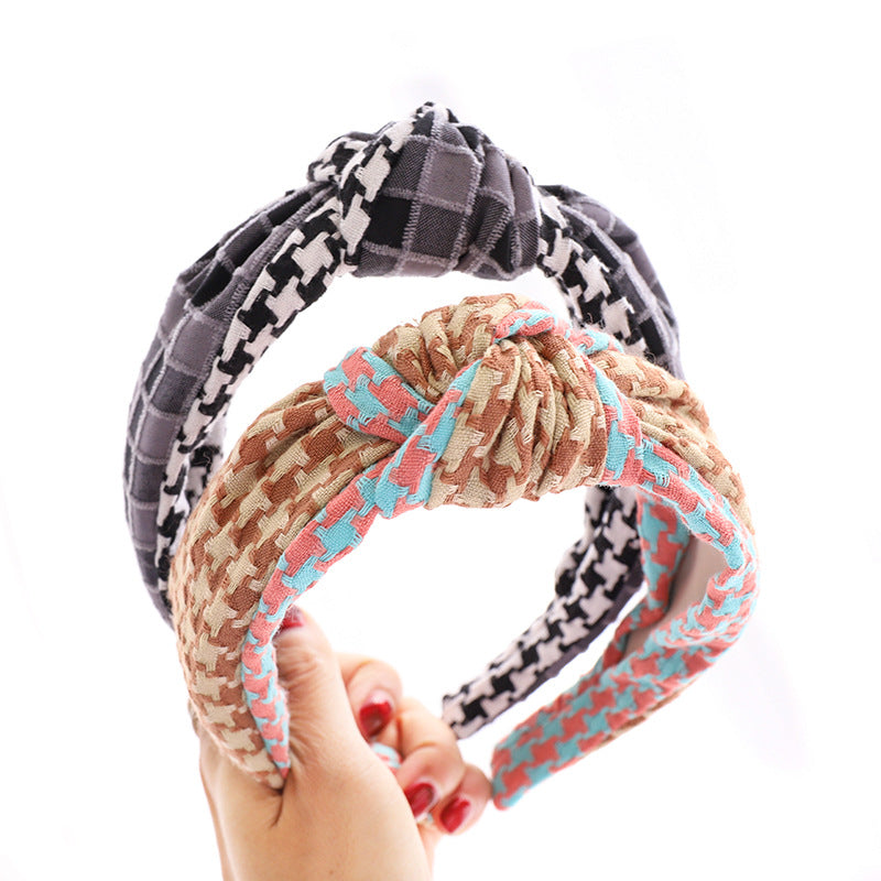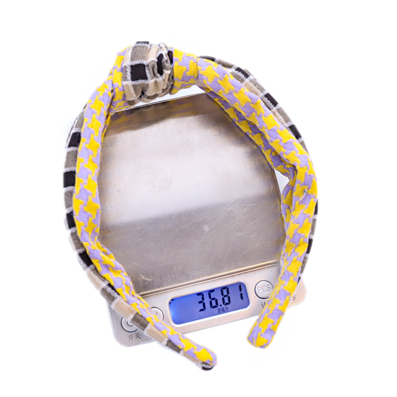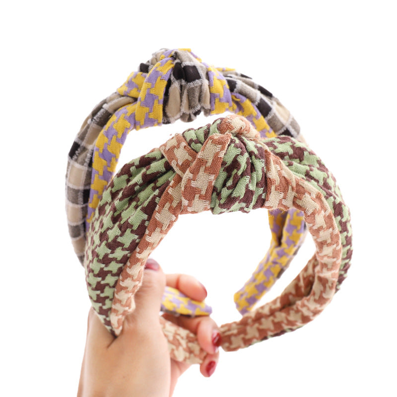 R106韓版小香風拼色髮箍時尚秋冬格子布藝中間結頭箍髮卡女士頭飾Plaid