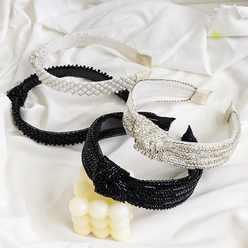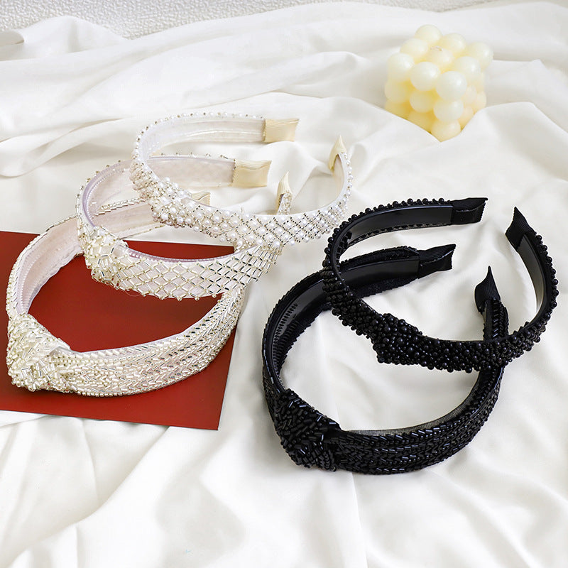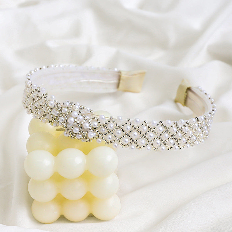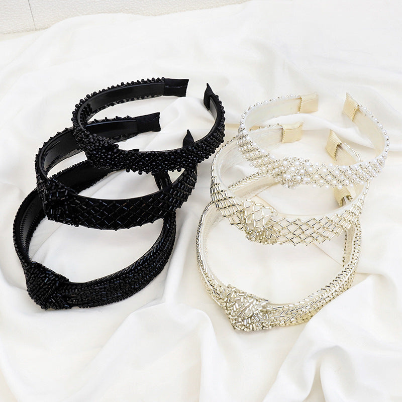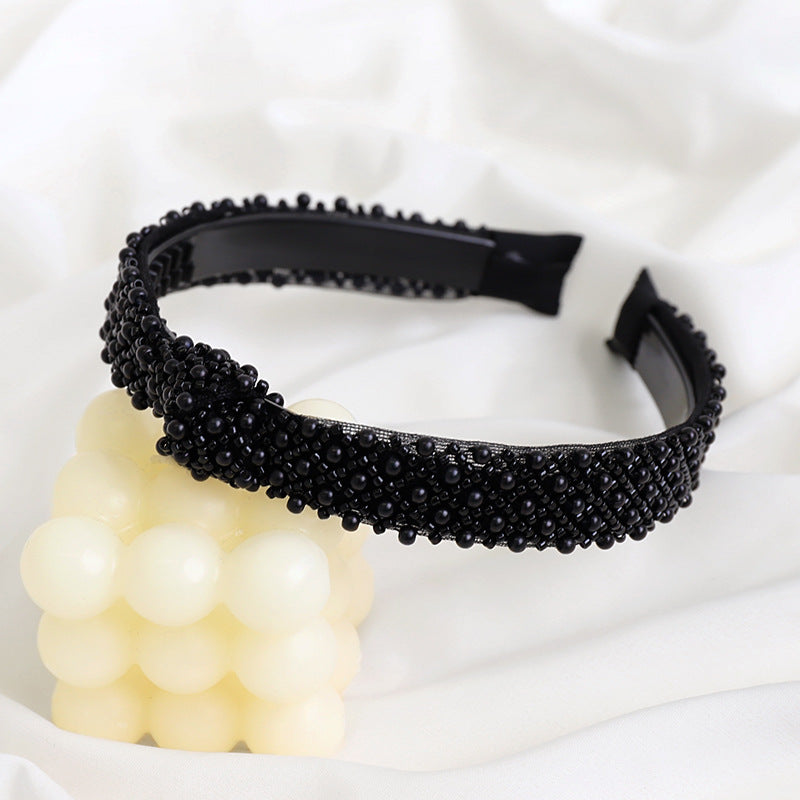 R188韩国新品头箍简约女士压发洗脸发捆头饰纯色镶珍珠水钻发箍hh202105_02