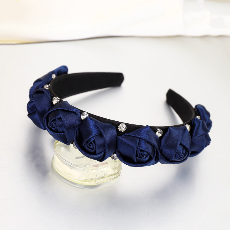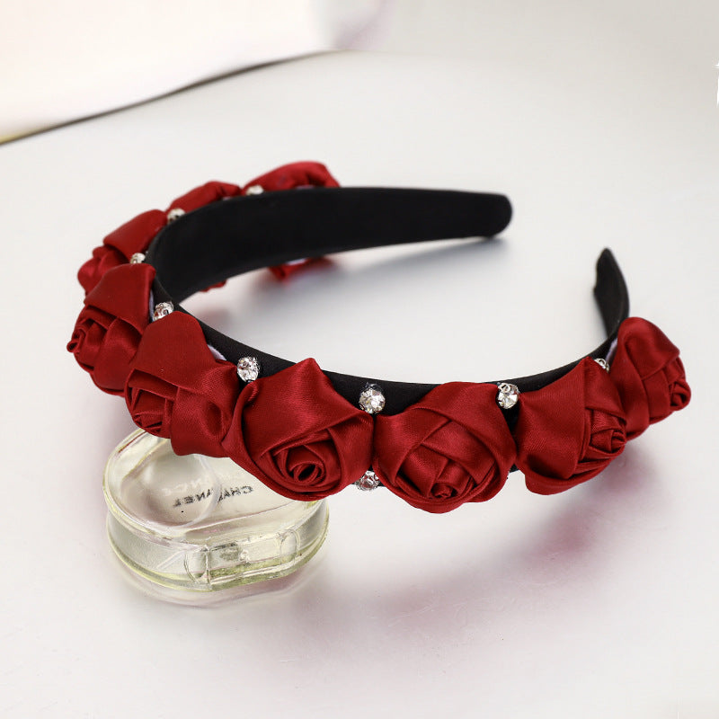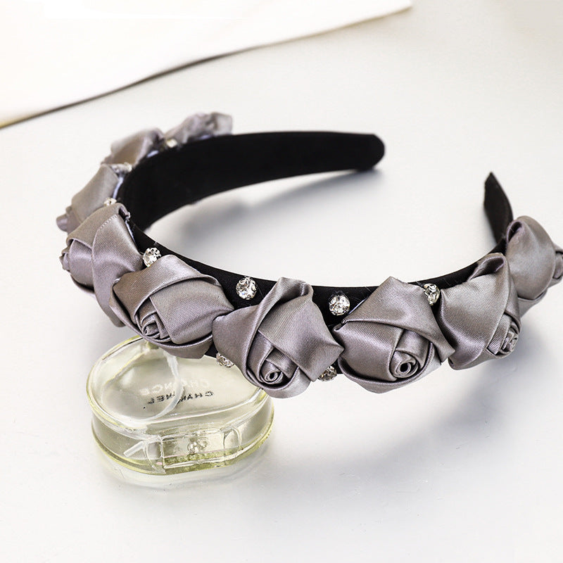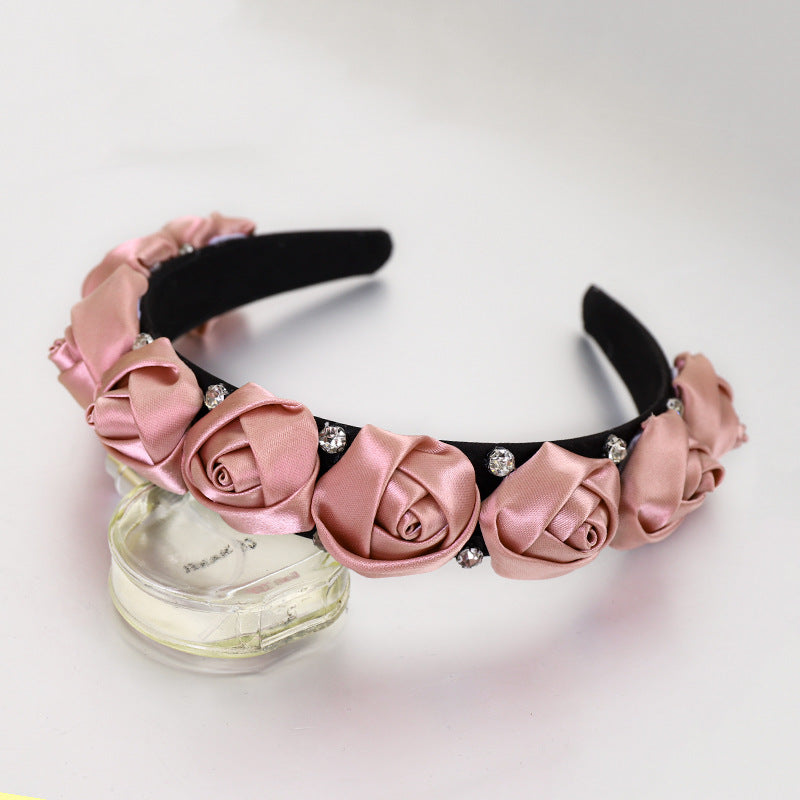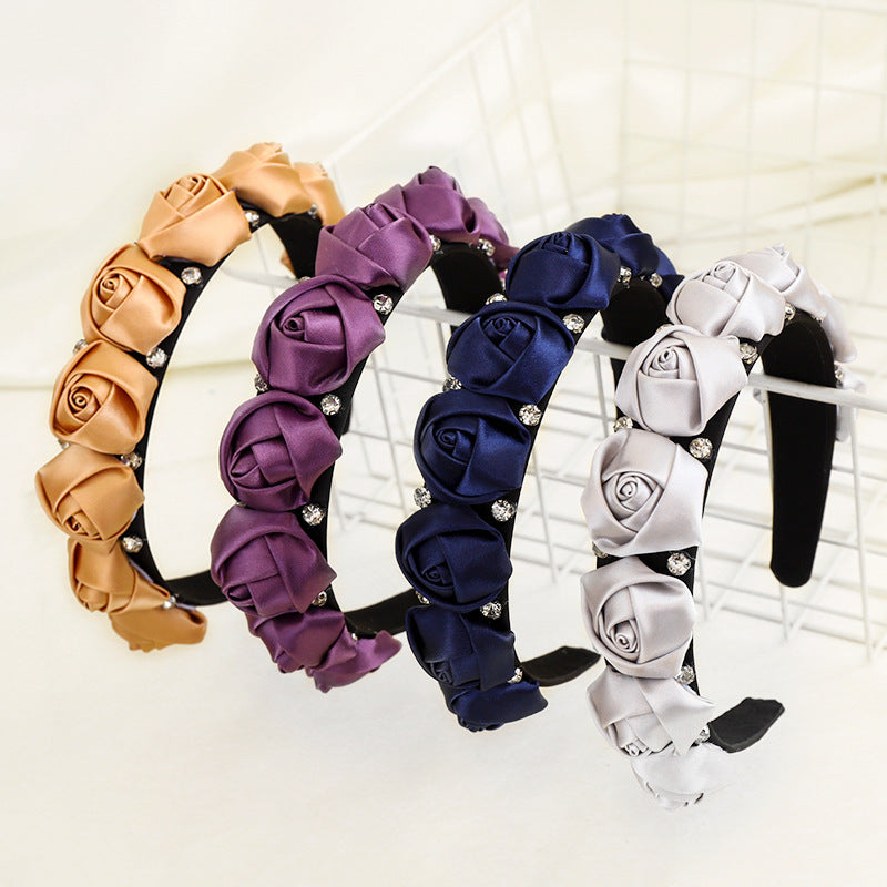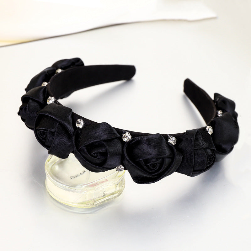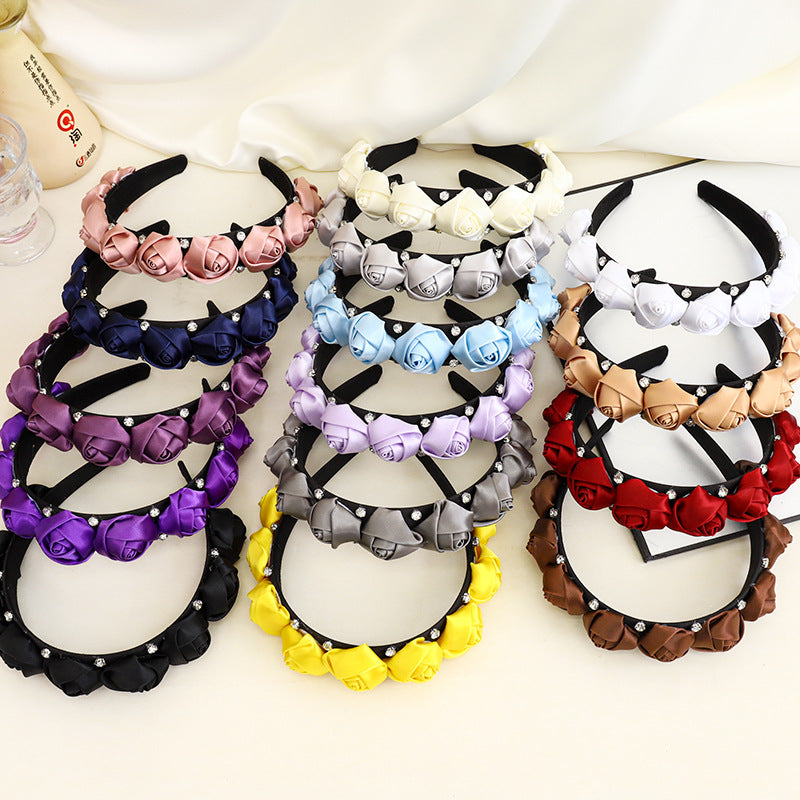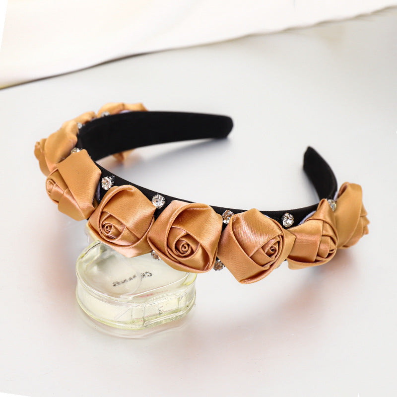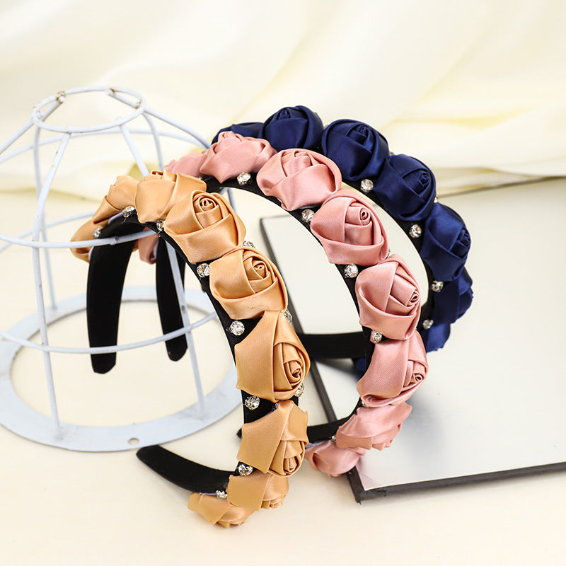 R201欧美风新品头箍时尚纯色玫瑰花布艺头饰发捆镶钻女士发箍hh202105_01