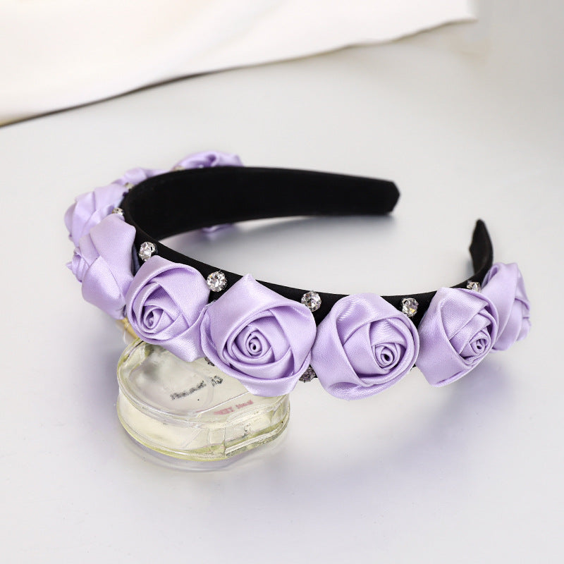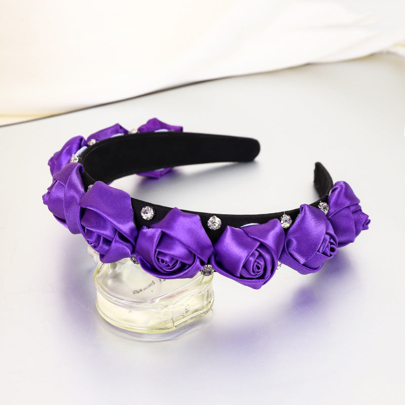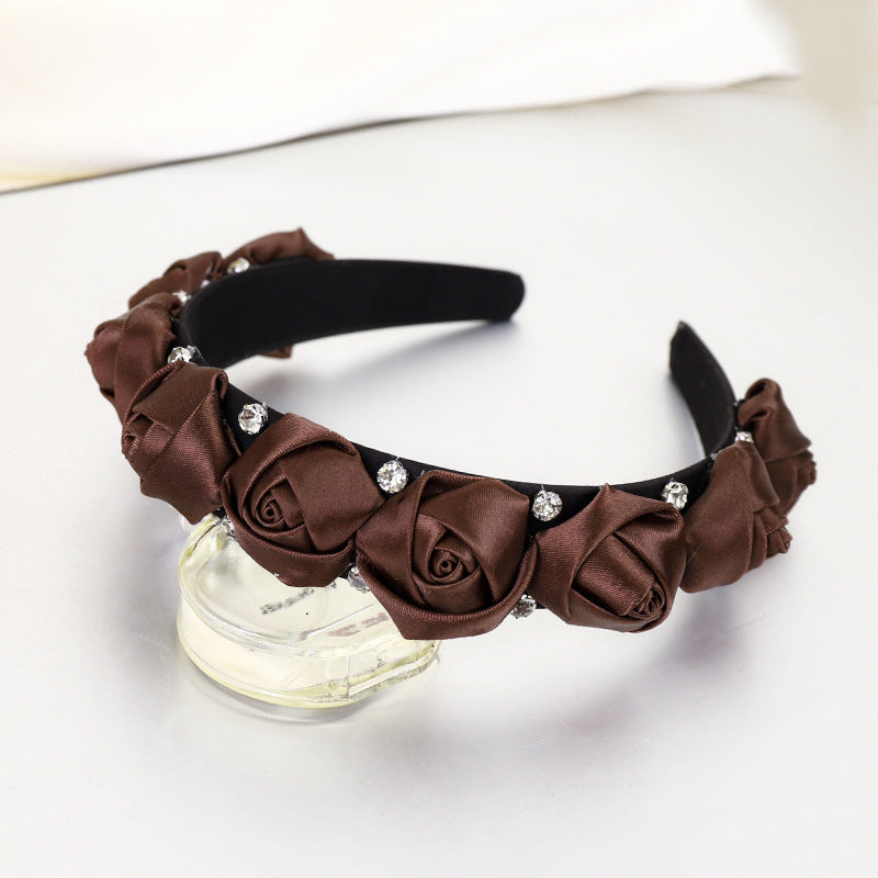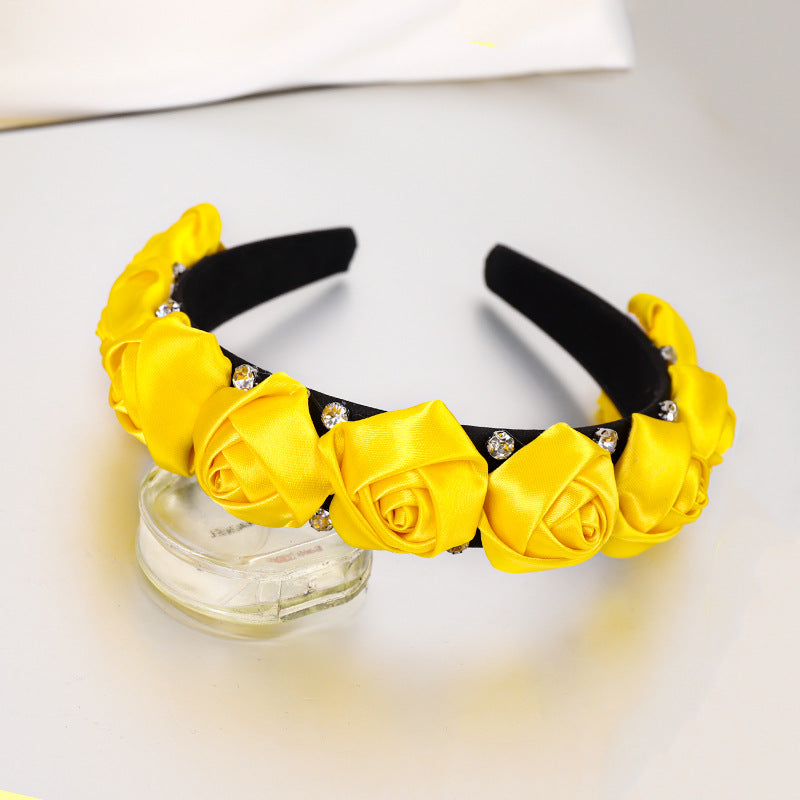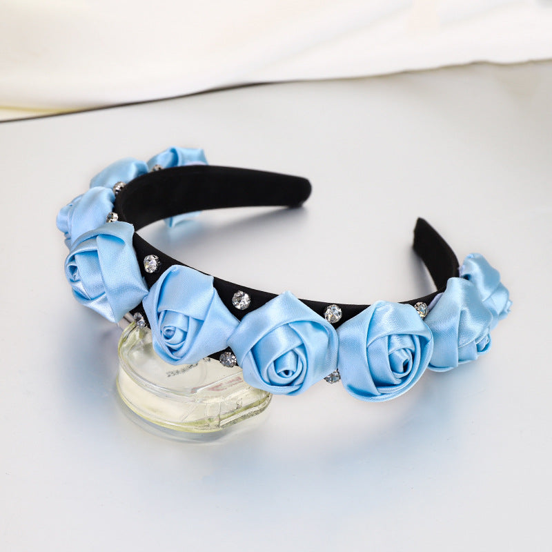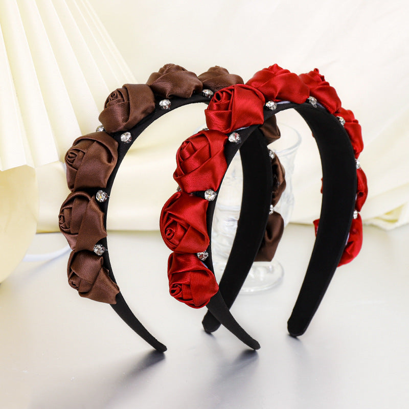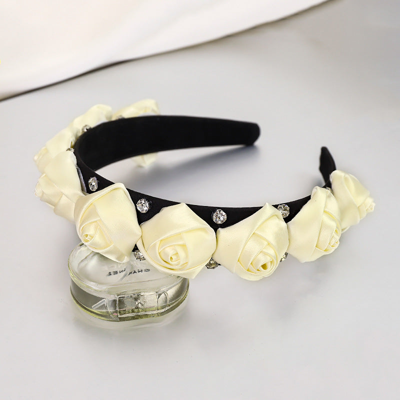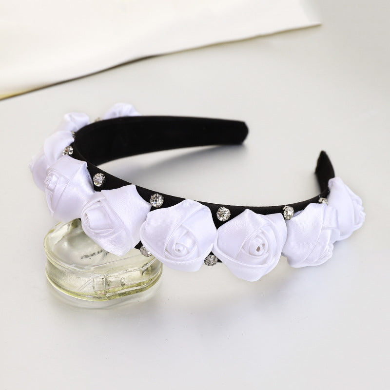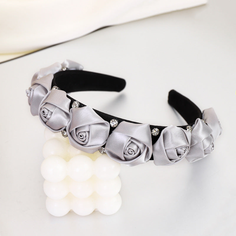 R201欧美风新品头箍时尚纯色玫瑰花布艺头饰发捆镶钻女士发箍hh202105_01