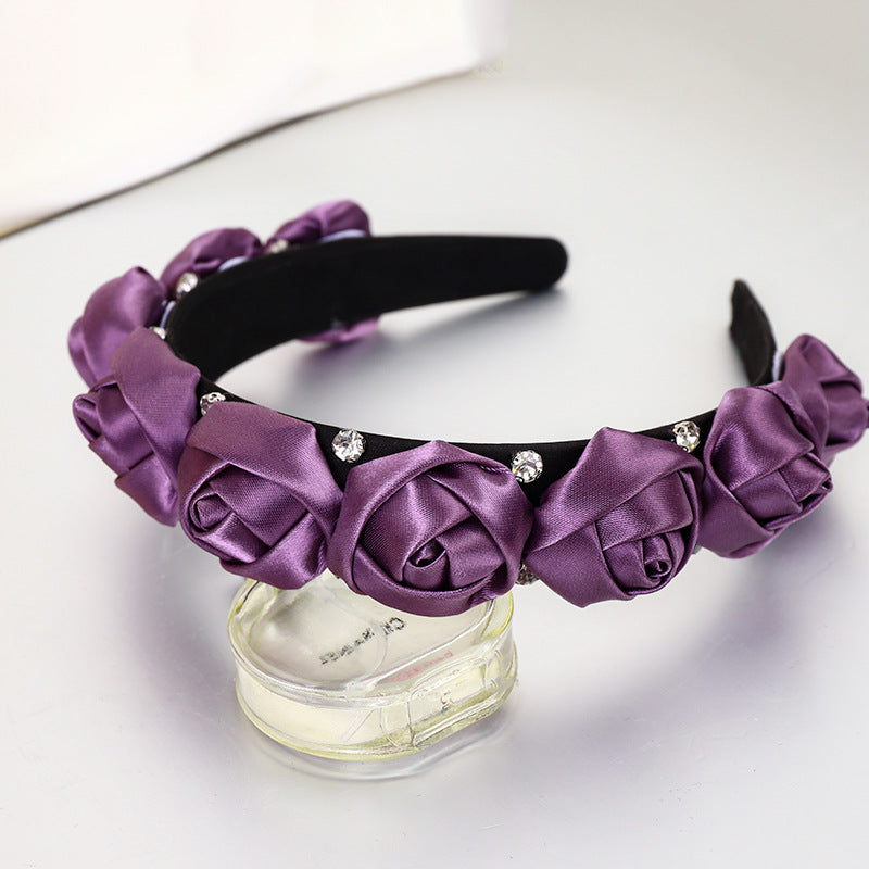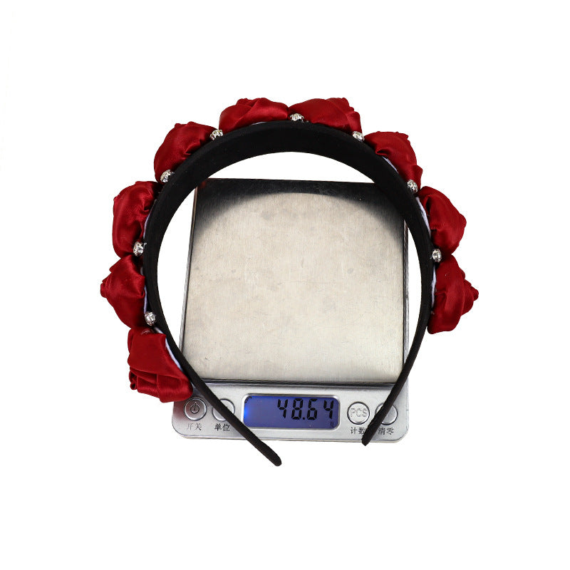 品名:R201欧美风新品头箍时尚纯色玫瑰花布艺头饰发捆镶钻女士发箍hh202105