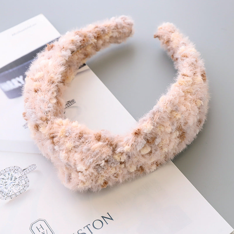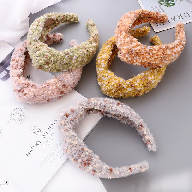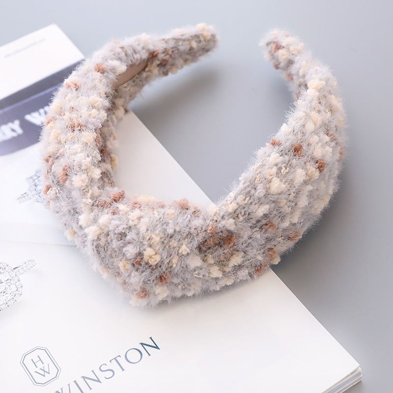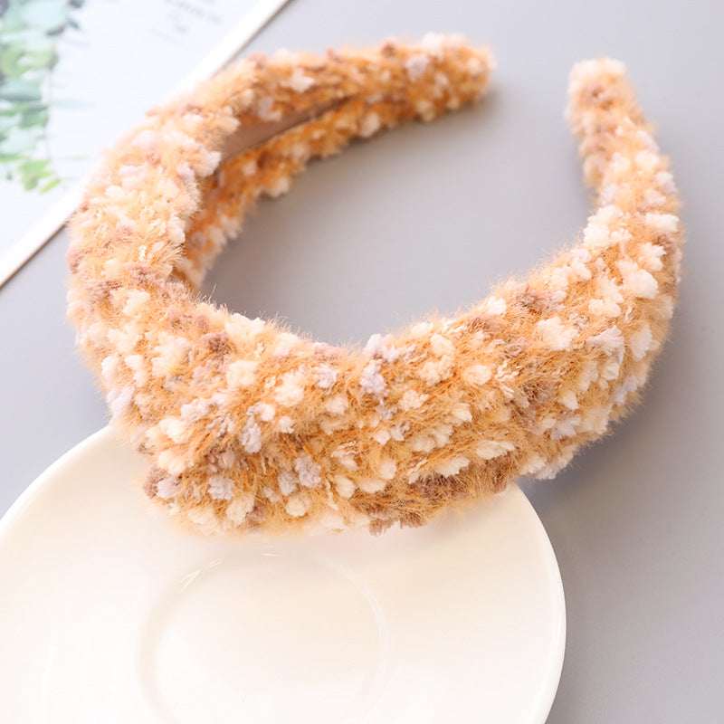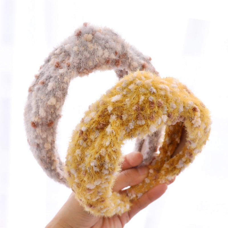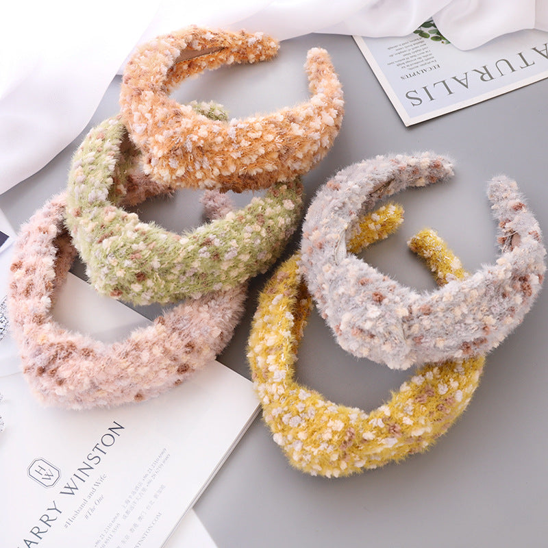 R87跨境熱銷冬季新品髮箍時尚毛面料中間結頭箍髮卡百搭女髮飾plush