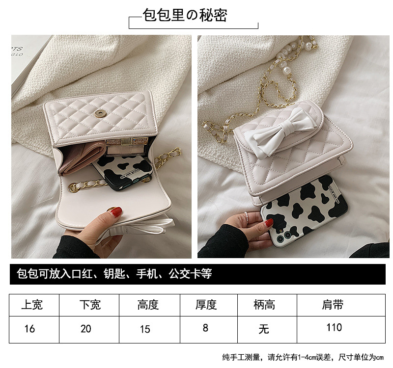 XCY4101可愛質感小包包女2021新款潮時尚洋氣串珠鏈條小方包蝴蝶結斜跨包MG20210802
